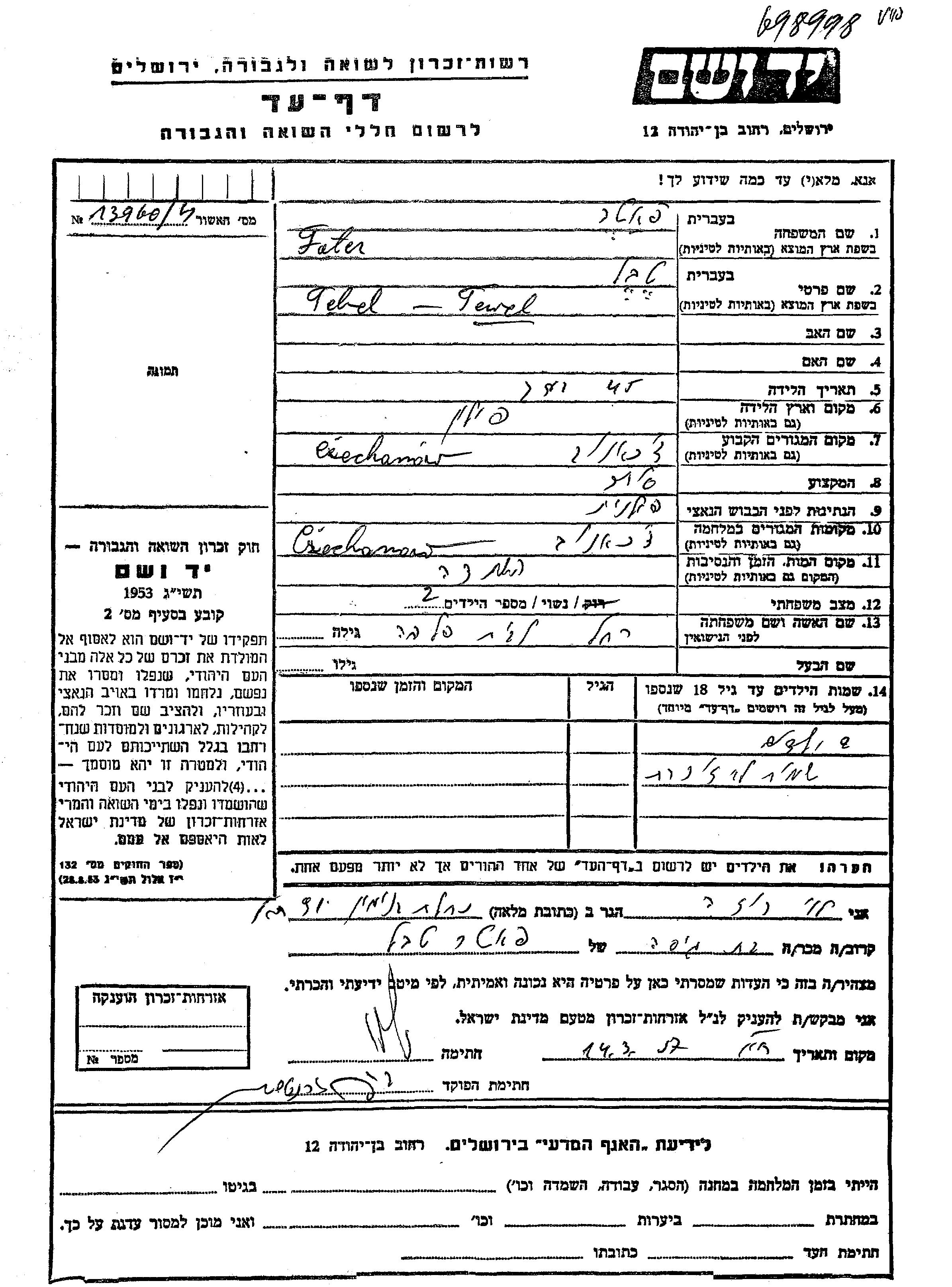 Yad Vashem - Pages of Testimony Names Memorial Collection