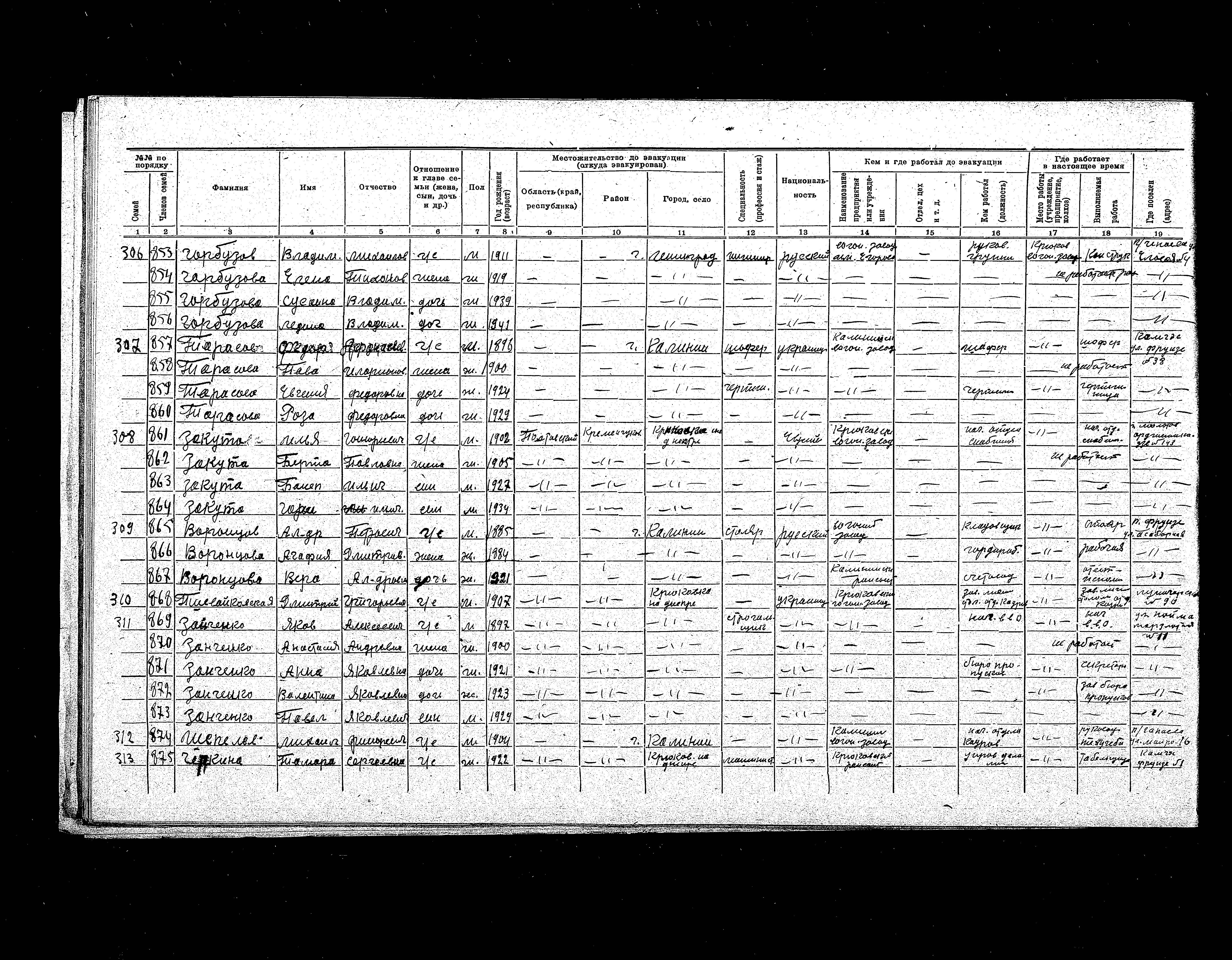 Was Registered Following the Evacuation/ in the Interior of the Soviet Union