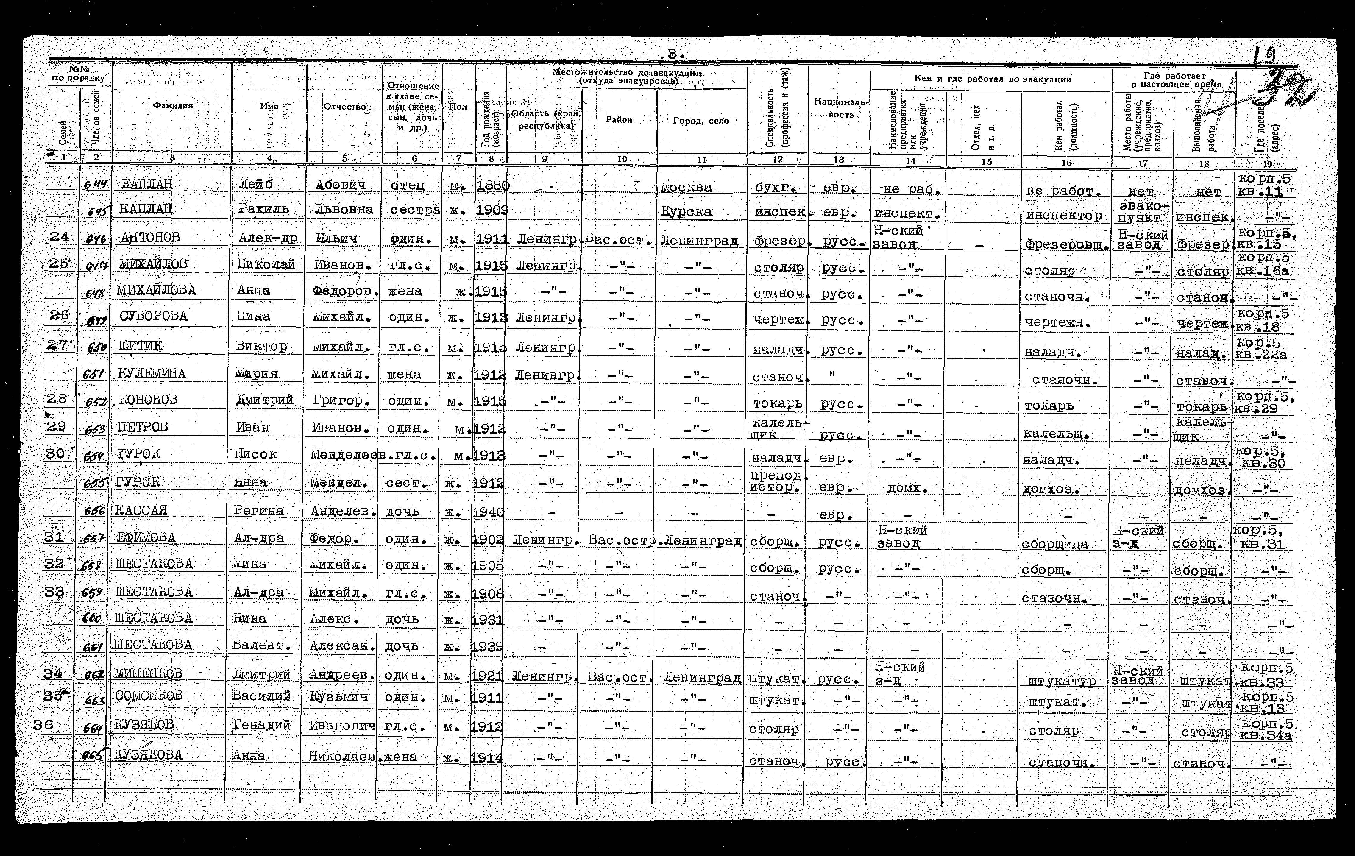 Rakhil Kaplan was born, 1909 to Lev Leyb. She was an inspector. Prior to WWII she lived in Kurskaya, Russia (USSR). During the war she was in Kazan, Russia (USSR). Rakhil was registered following the evacuation/ in the interior of the Soviet Union.