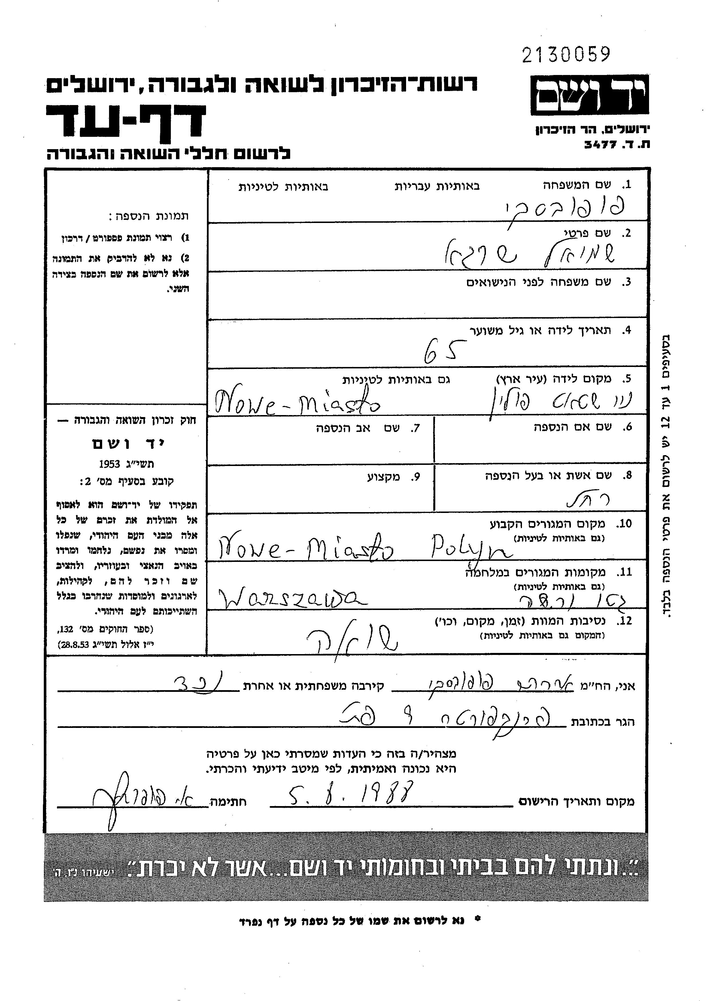 Yad Vashem - Pages of Testimony Names Memorial Collection