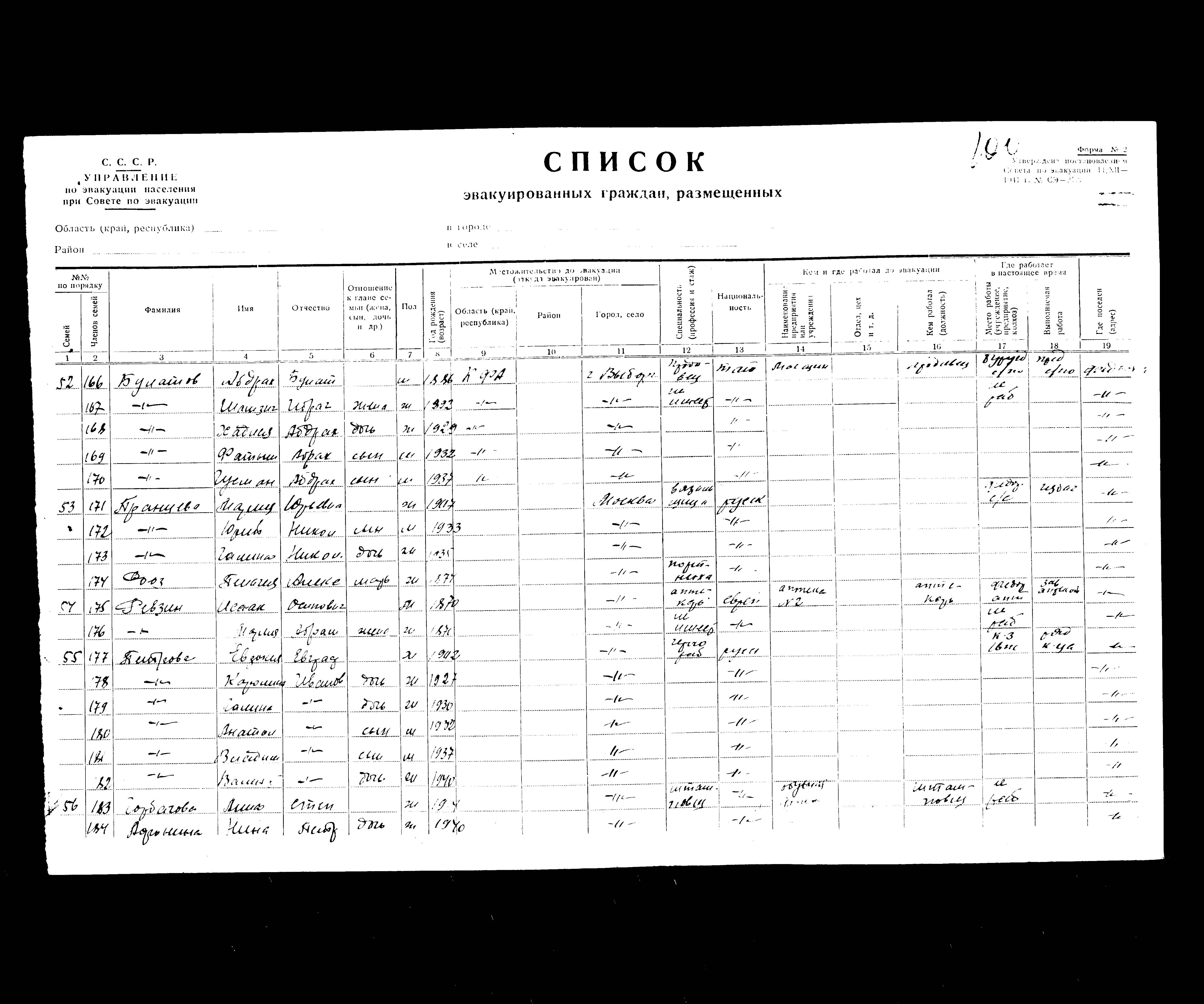 Was Registered Following the Evacuation/ in the Interior of the Soviet Union