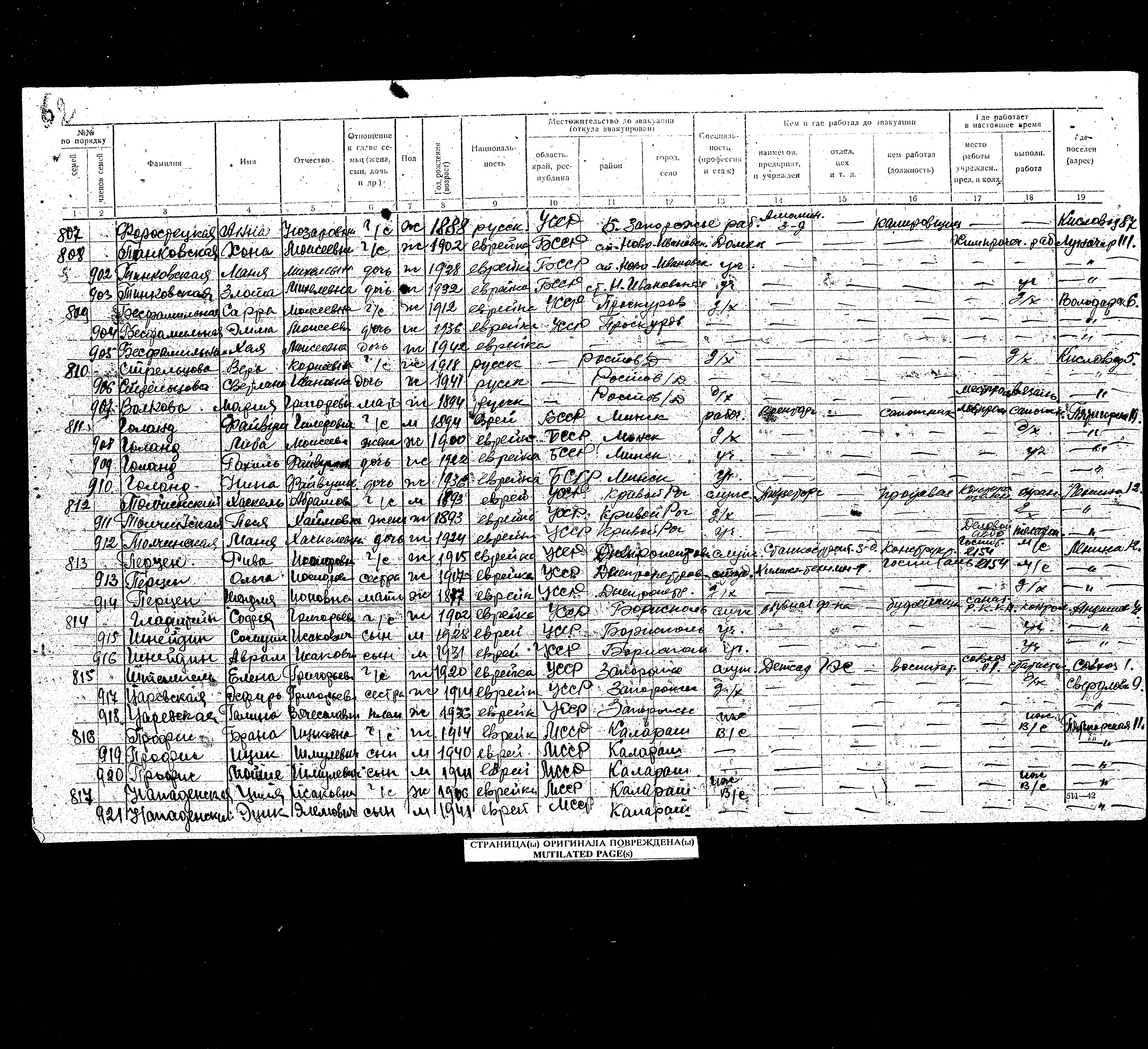 Gladshteyn Sofia 1902 Borispol, Ukraine (USSR) List of evacuated persons
