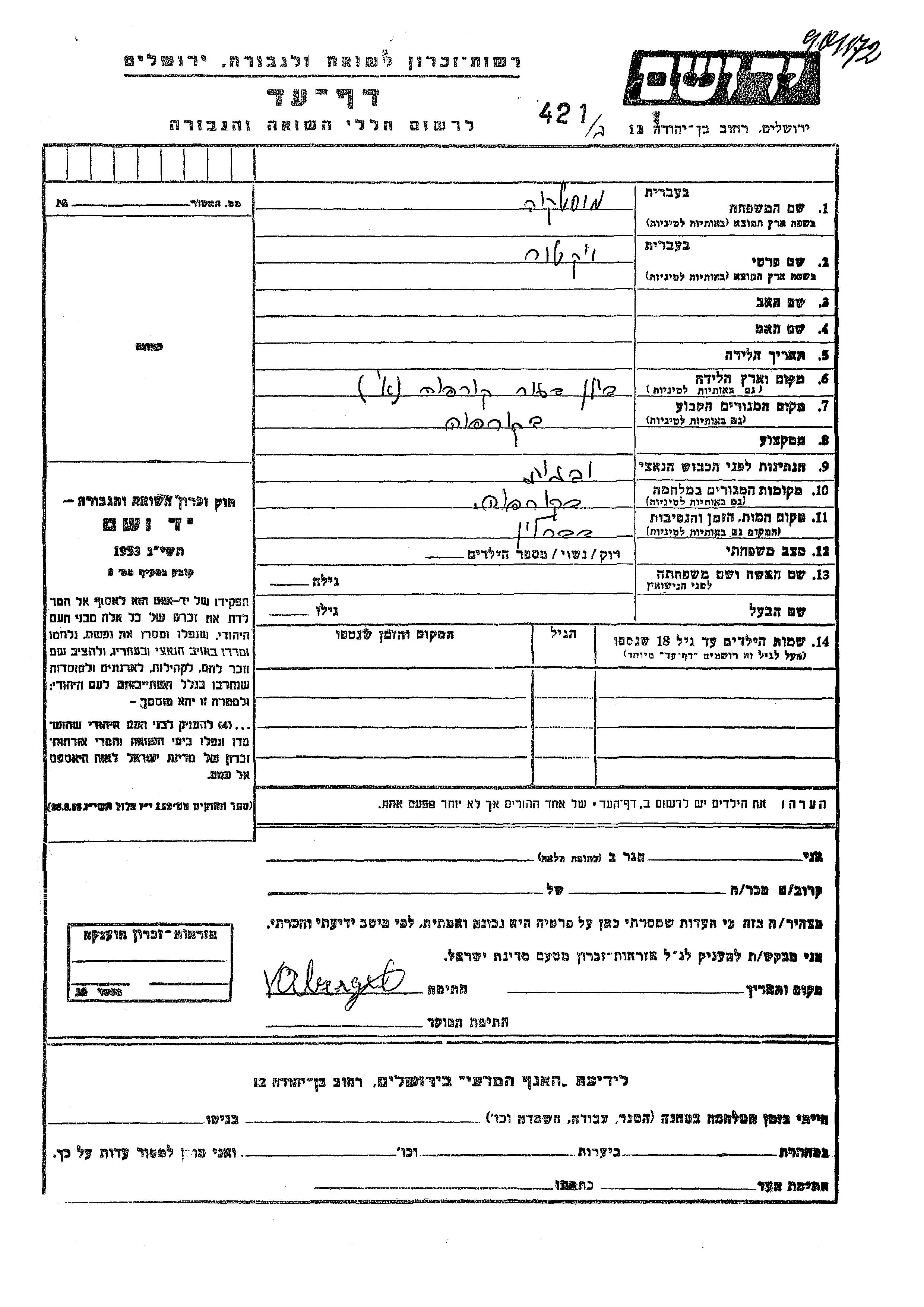Yad Vashem - Pages of Testimony Names Memorial Collection