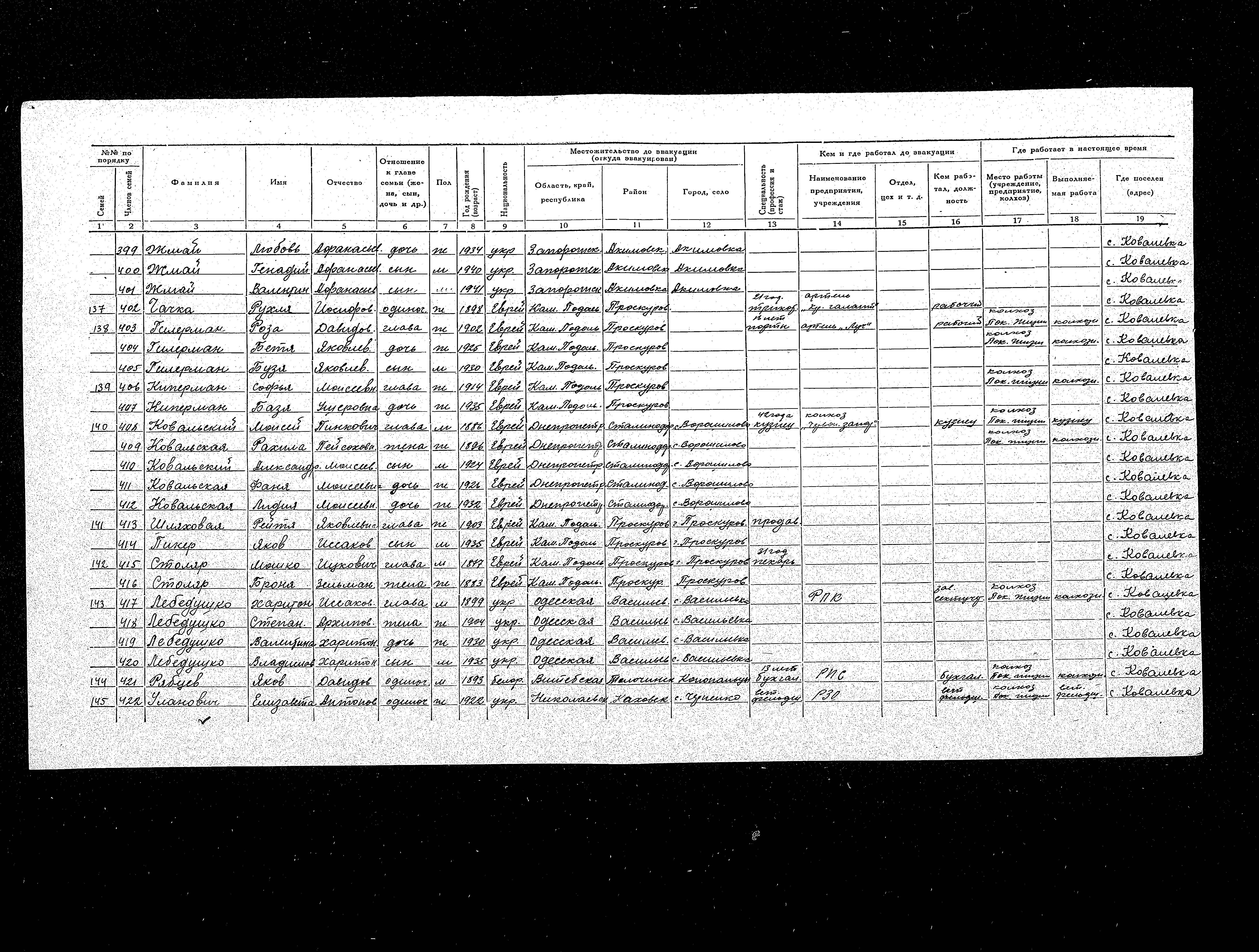 Lebedushko Vladislav 1935 Vasilyevka, Ukraine (USSR) List of evacuated persons