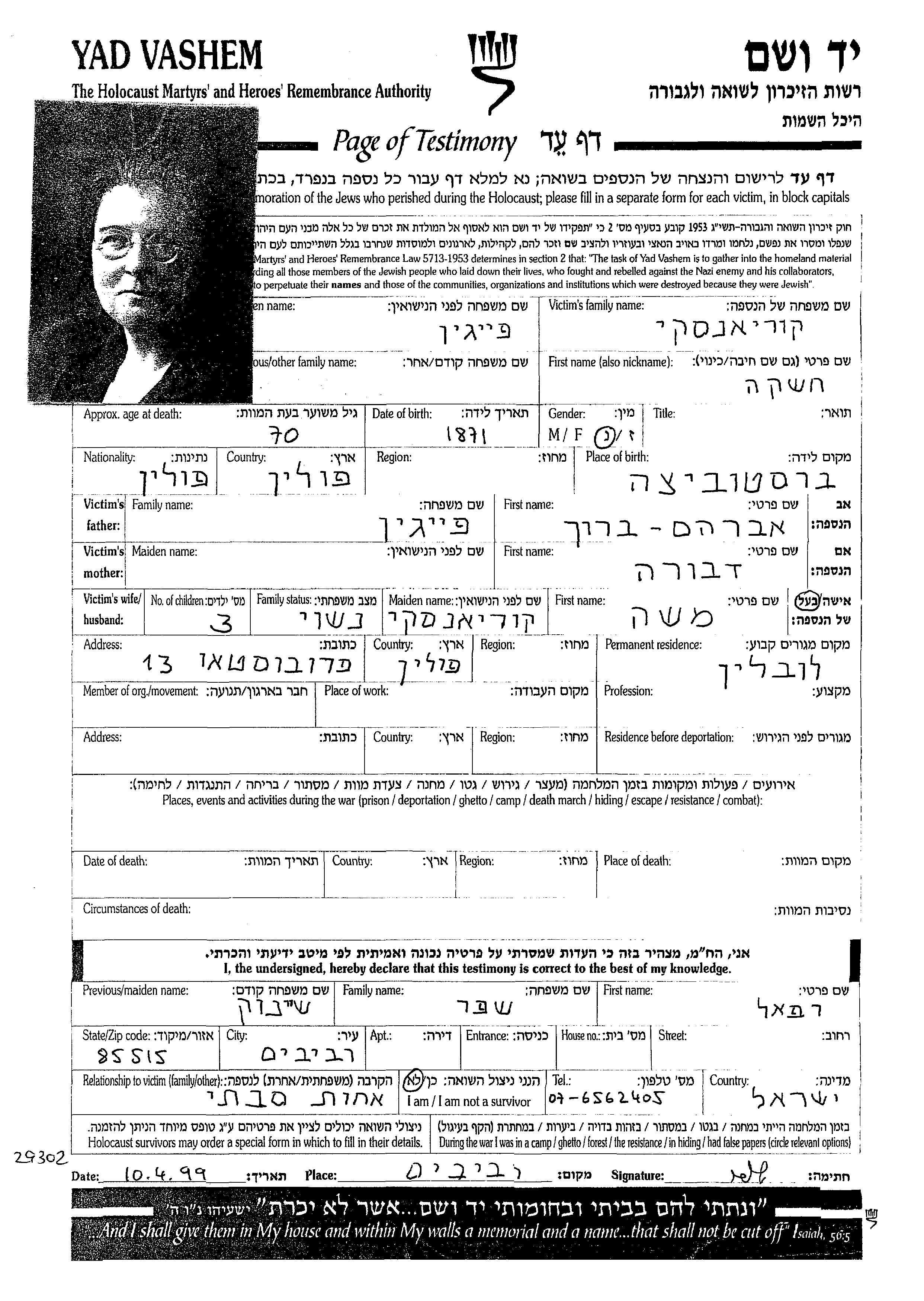 Yad Vashem - Pages of Testimony Names Memorial Collection