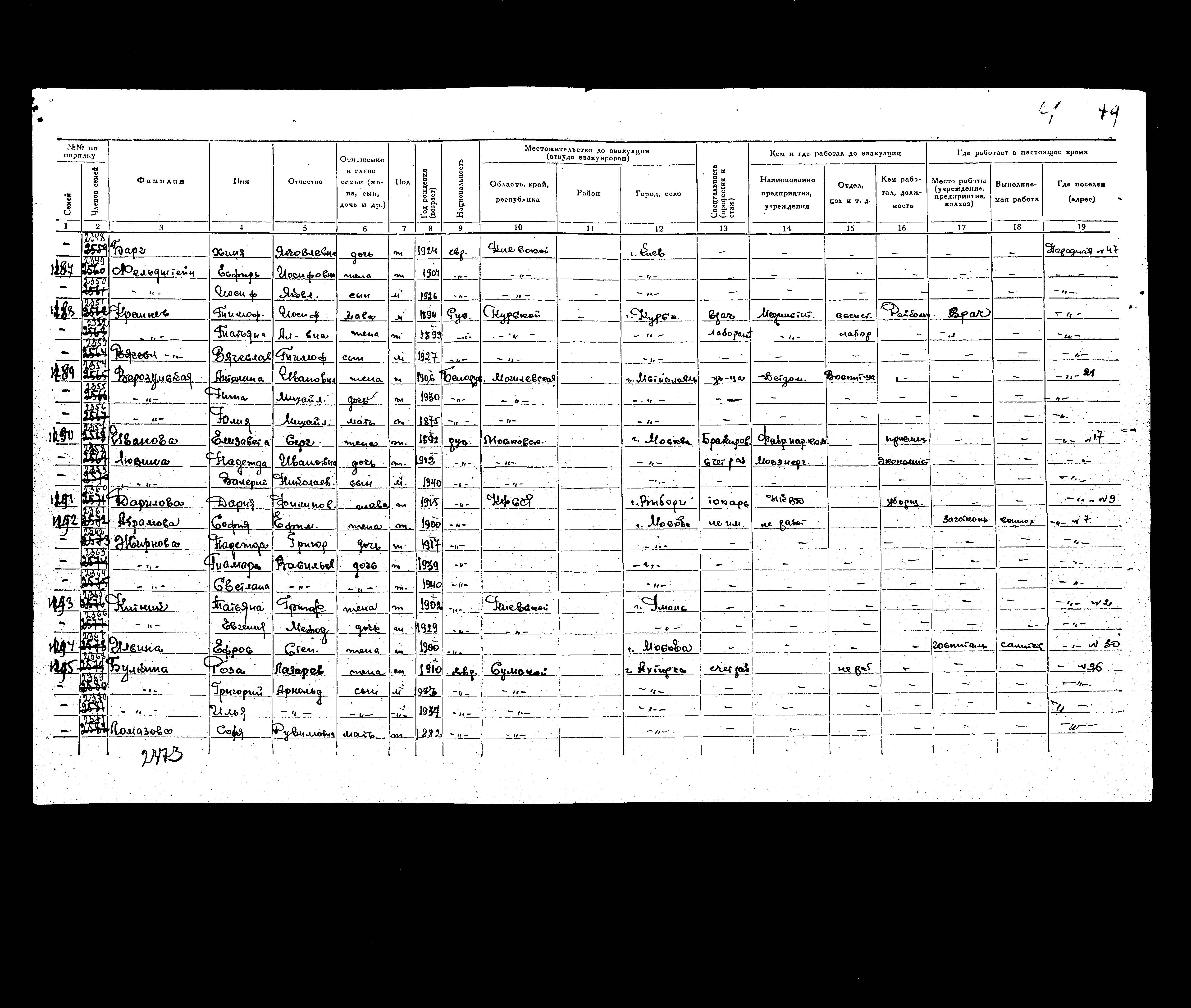 Was Registered Following the Evacuation/ in the Interior of the Soviet Union