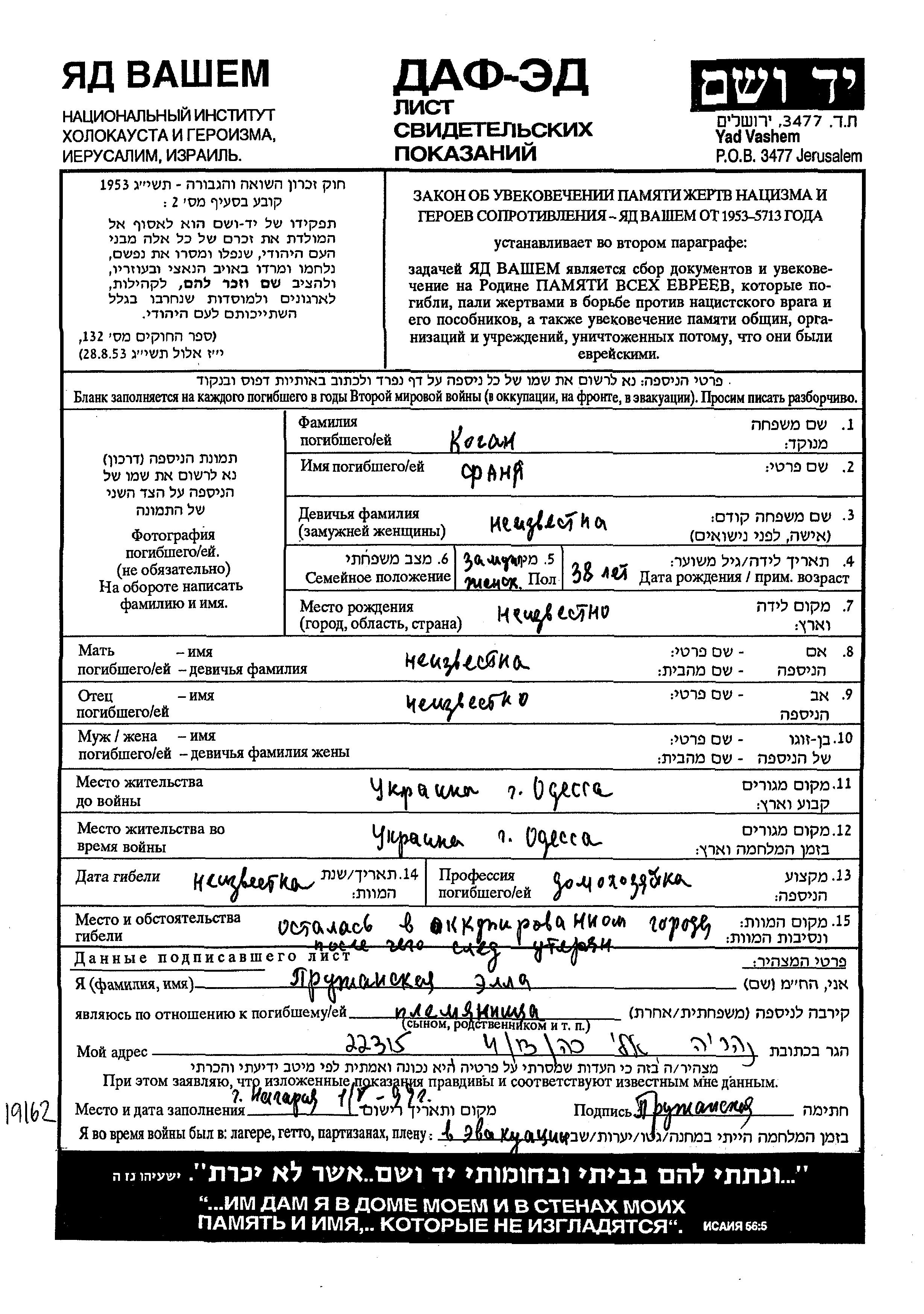 Search by last name of the submitter of the Page of Testimony, including diminutives or nicknames
