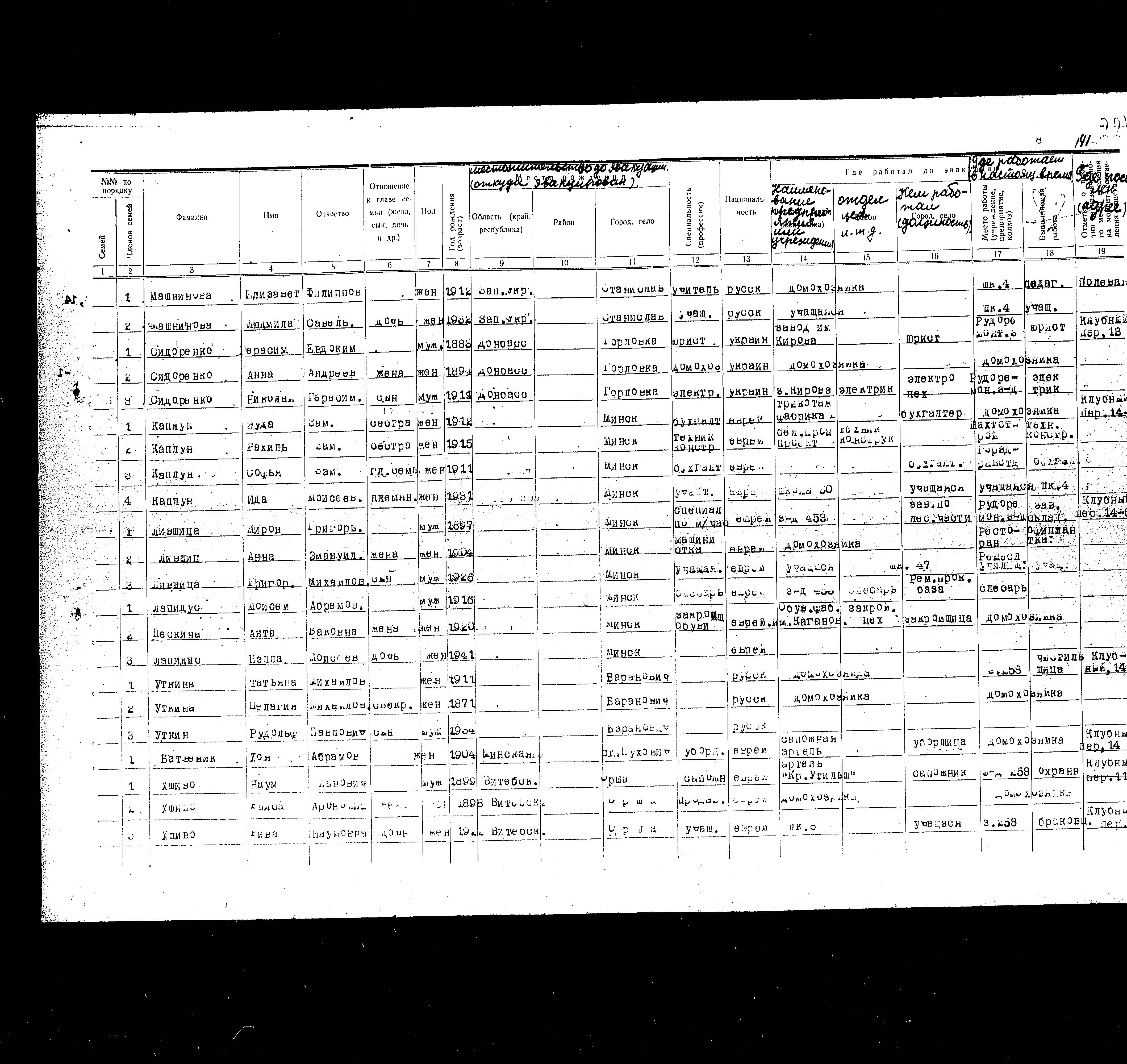 Khoya Batvenik was born, 1904 to Abram. She was a cleaner. Prior to WWII she lived in Pukhovichi, Belorussia (USSR). During the war she was in Kopeysk, Russia (USSR). Khoya was registered following the evacuation/ in the interior of the Soviet Union.