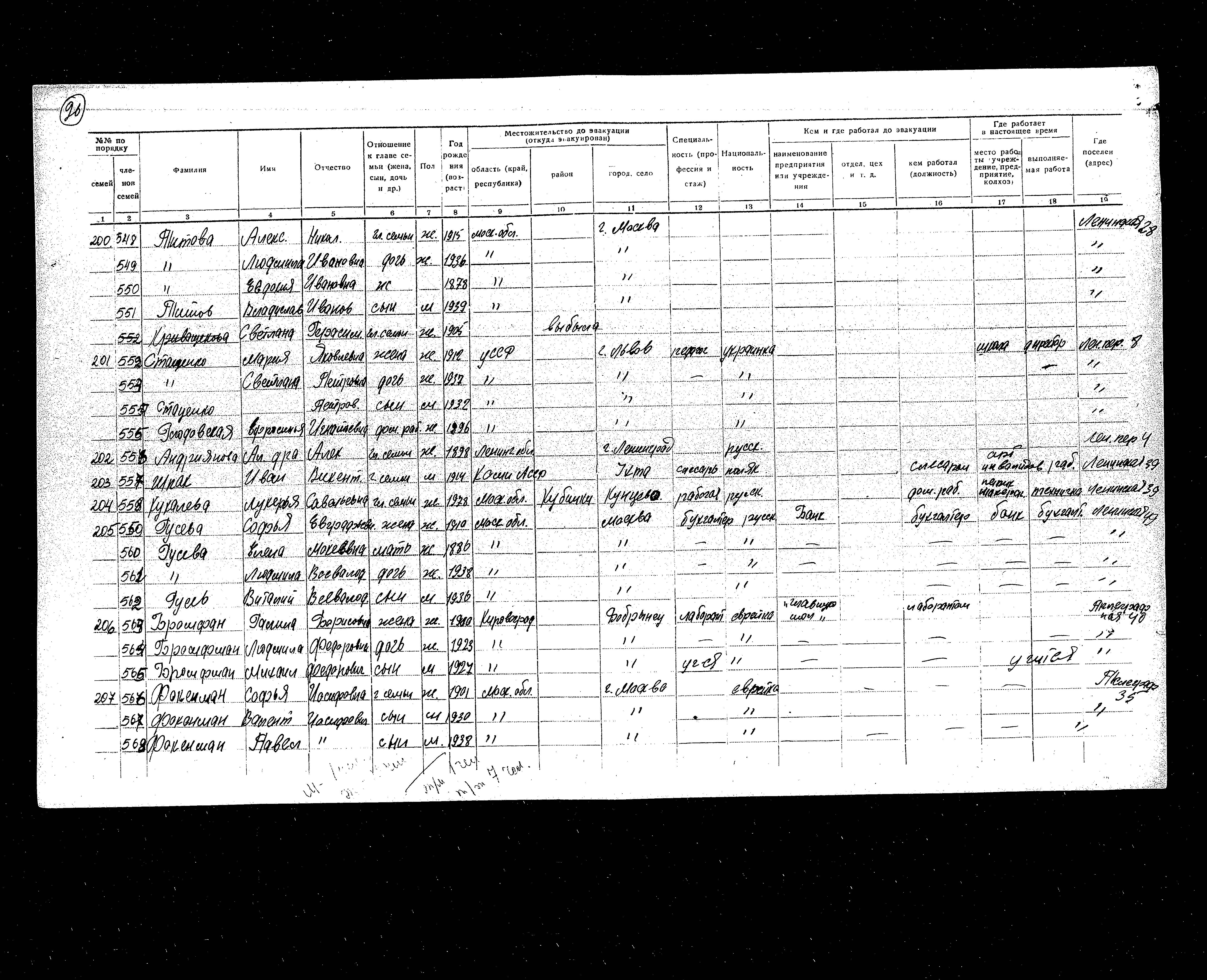 Was Registered Following the Evacuation/ in the Interior of the Soviet Union