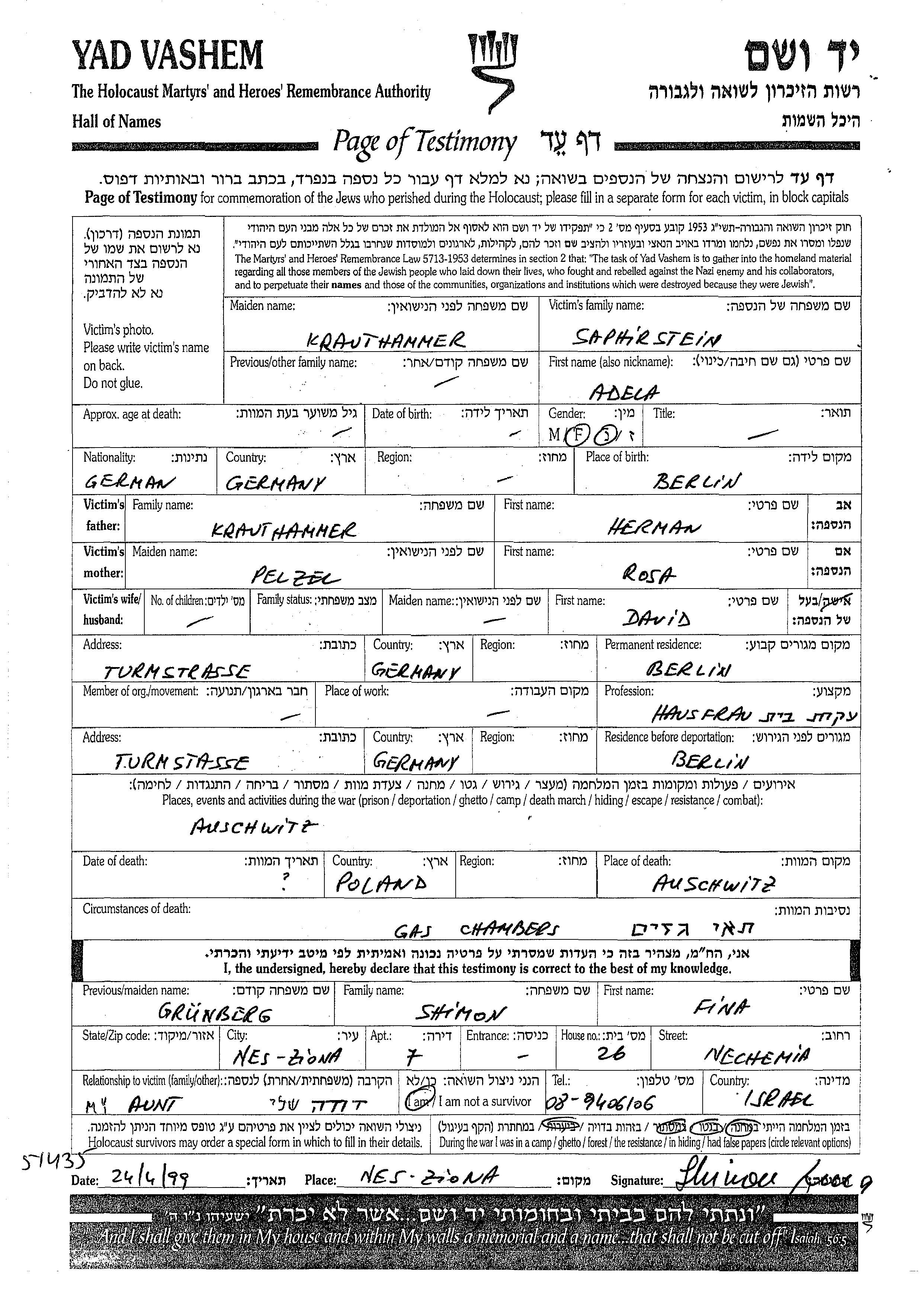 Search by last name of the submitter of the Page of Testimony, including diminutives or nicknames