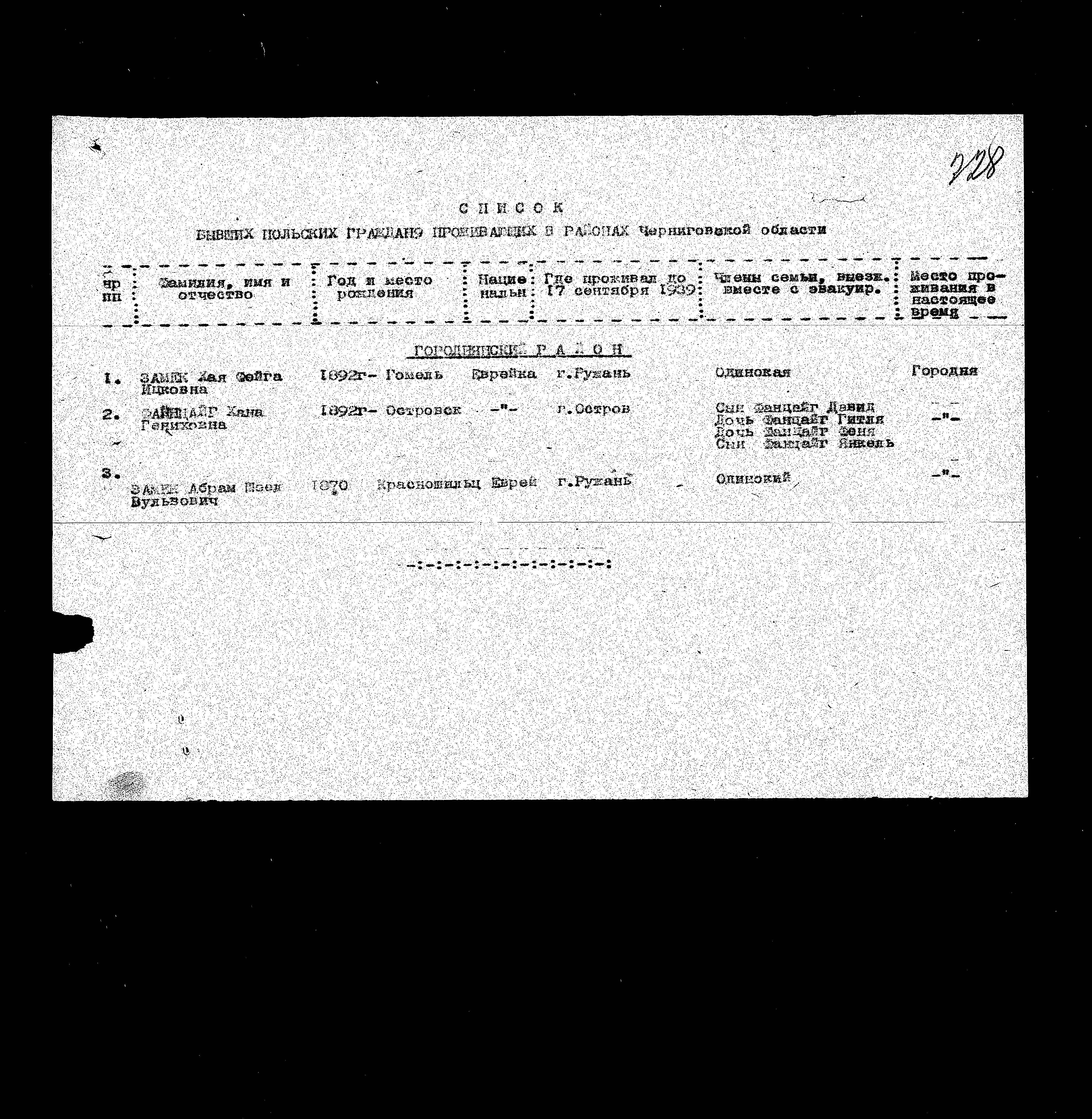 Abram Shosl Zamek was born in Krasnosielc, Poland, 1870 to Vulv. He was single. Prior to WWII he lived in Ruzhany, Poland. During the war he was in Soviet Union. Abram Shosl survived the Shoah.