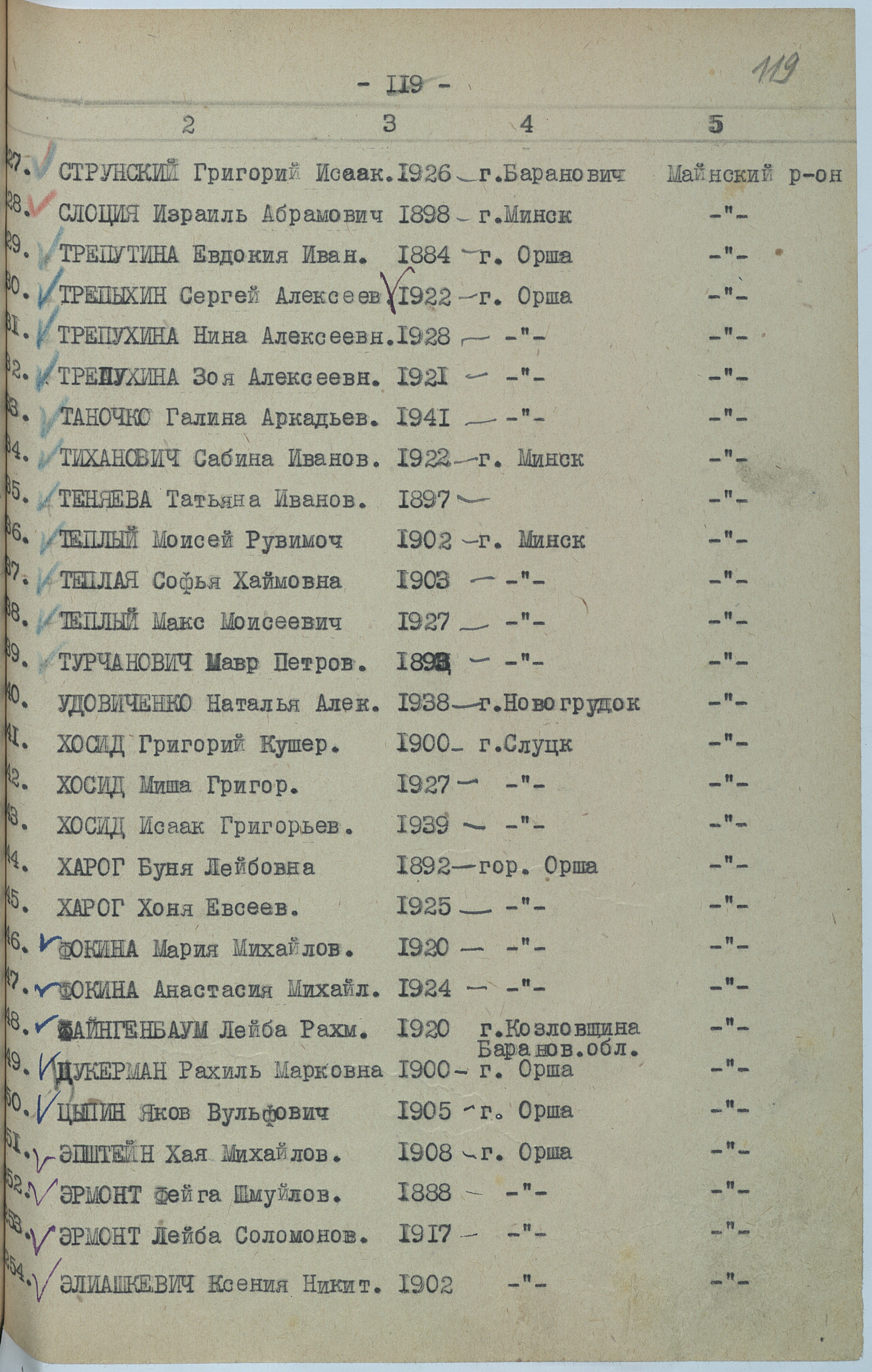 Leyba Faygenbaum was born, 1920 to R. Prior to WWII she lived in Kozlovshchina, Poland. During the war she was in Mayna, Russia (USSR). Leyba was registered following the evacuation/ in the interior of the Soviet Union.