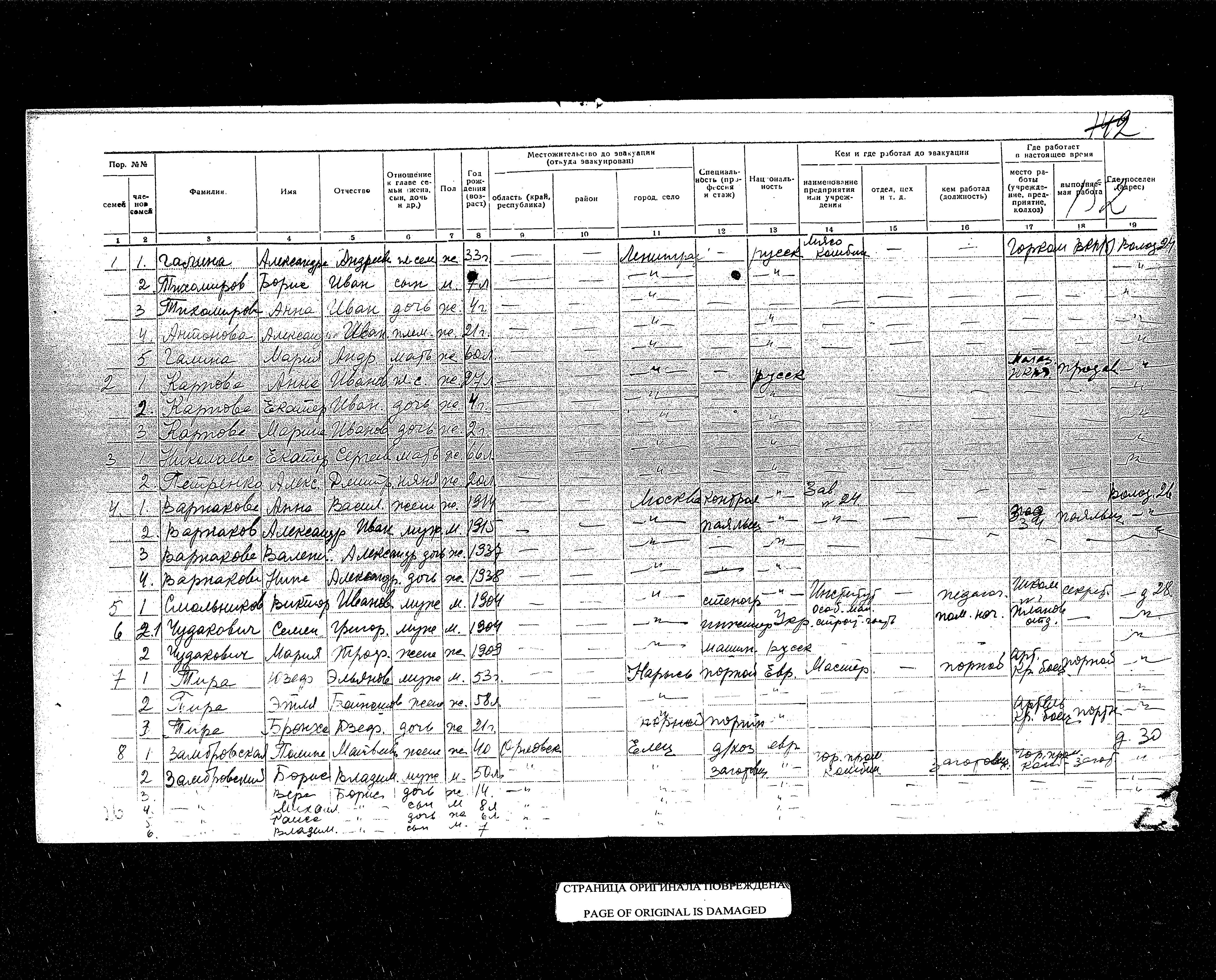 Zambrovski Mikhail Yelets, Russia (USSR) List of evacuated persons