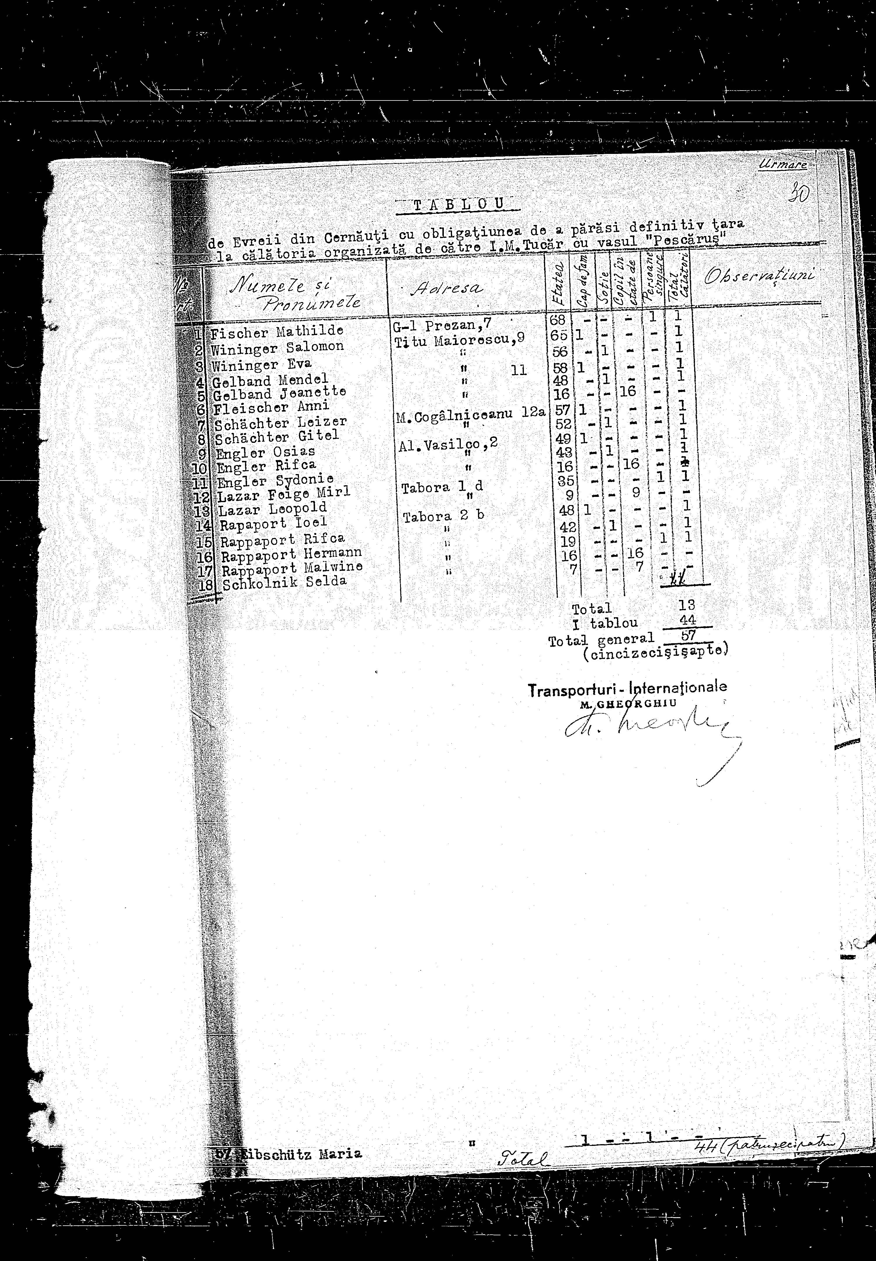 Lists of Jews from Cernauti who registered to leave Romania on the "Pescarus" ship, 26/06/1942