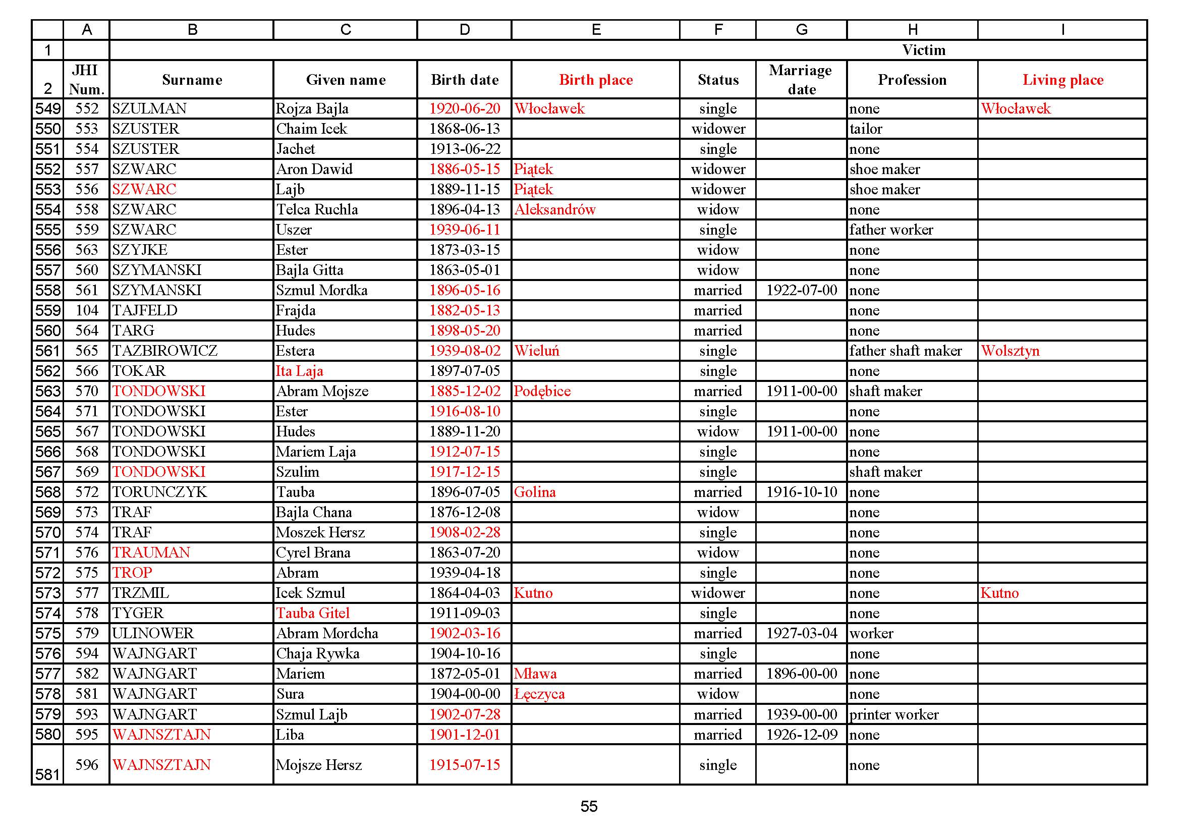 Torunczyk Tauba 1896 Golina, Poland List of persecuted persons