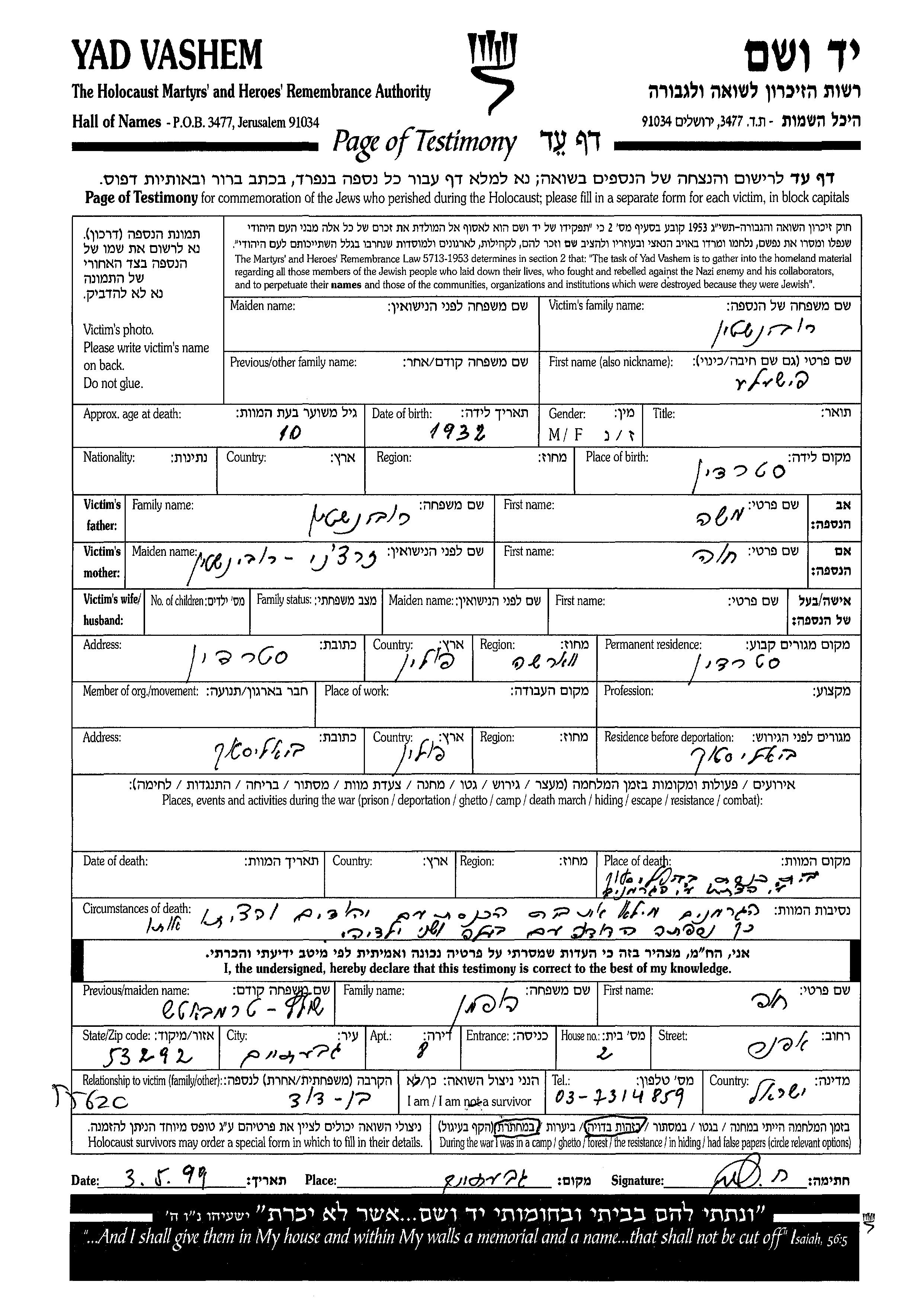 Fishele Rubinshtein was born in Sterdyn, Poland, 1932 to Moshe and Khava. Prior to WWII he lived in Sterdyn, Poland. During the war he was in Bialistok, Poland. Fishele was murdered in the Shoah. Place of death: Bialistok, Poland.