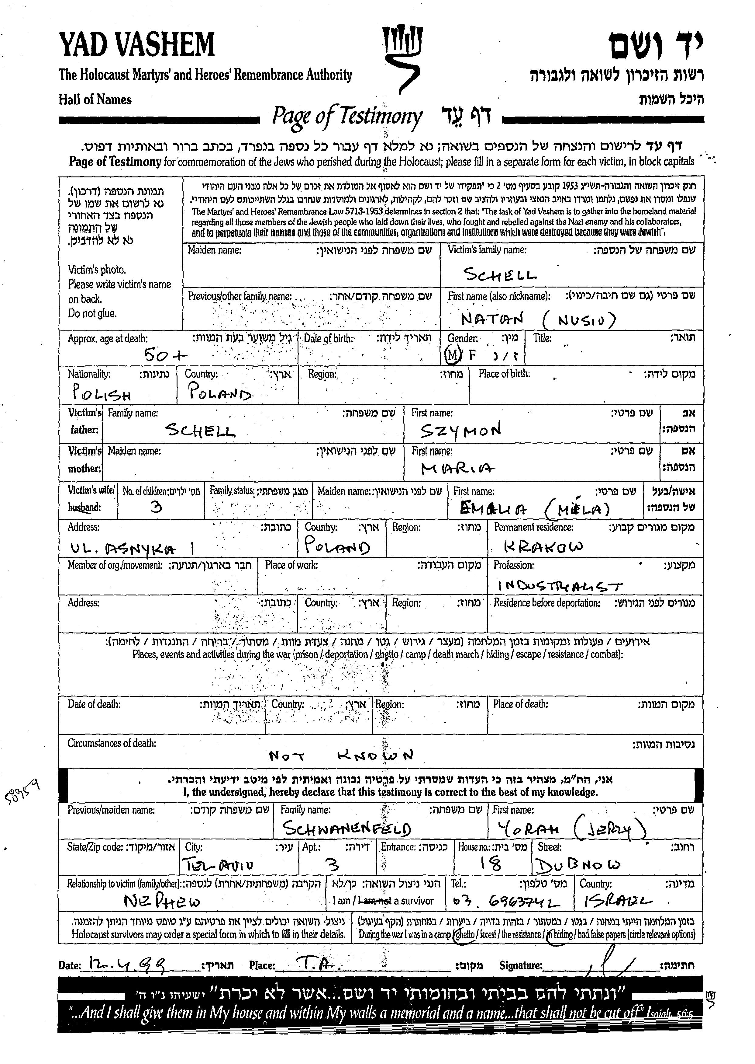 Yad Vashem - Pages of Testimony Names Memorial Collection