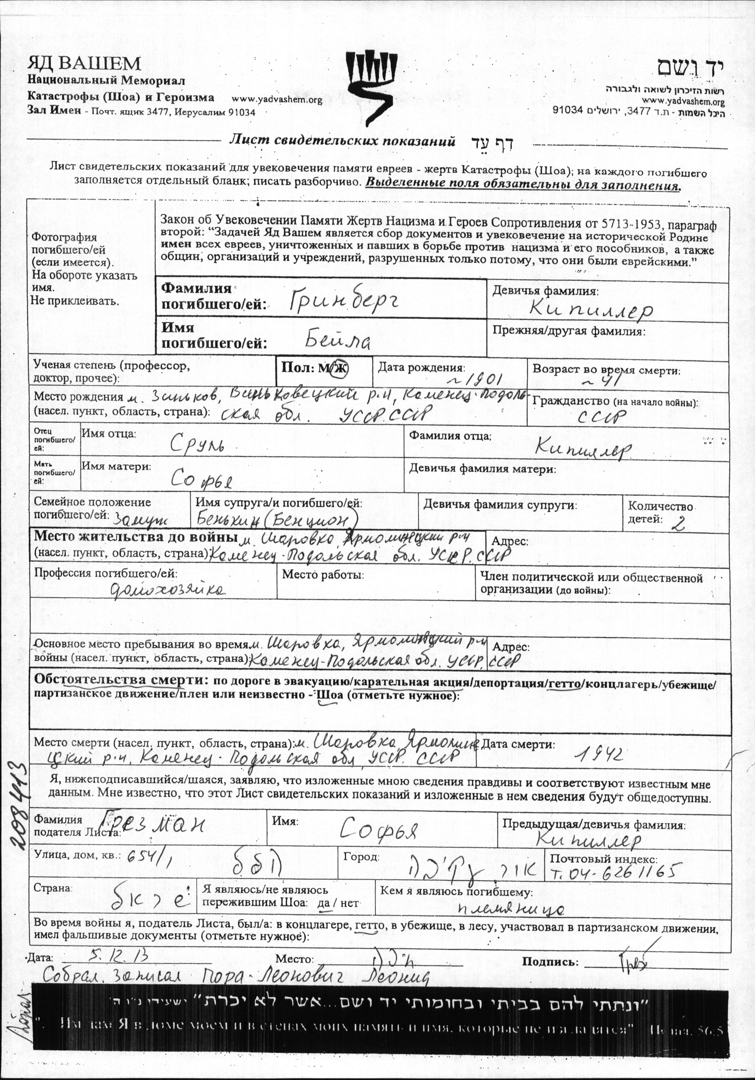 Search by last name of the submitter of the Page of Testimony, including diminutives or nicknames