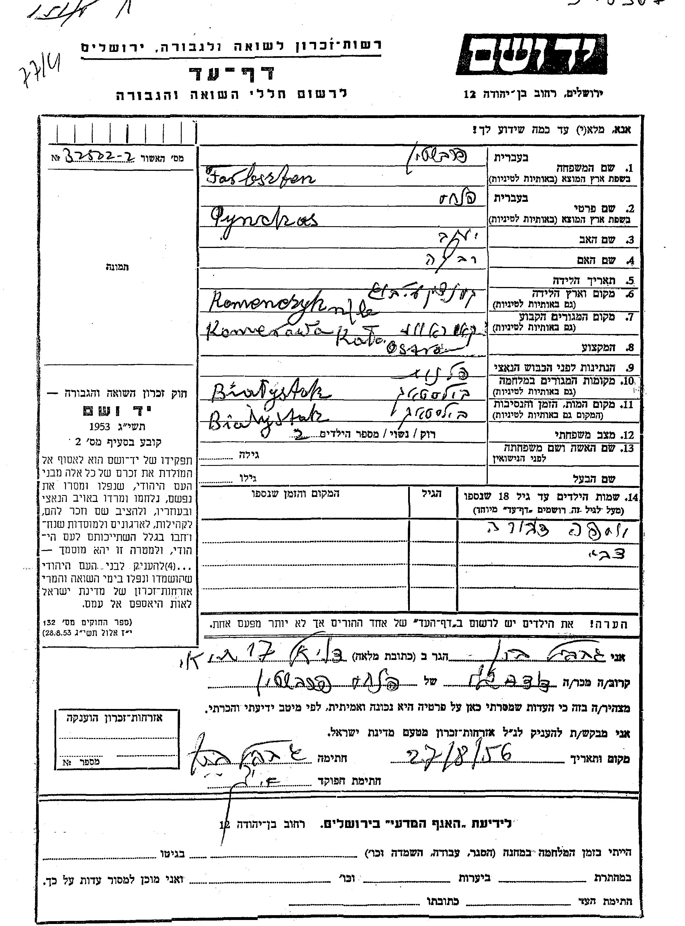 Pynchas Farbszten was born in KAMIENCZYK NAD BUGIEM, Poland to Yaakov and Rivka. He was married. Prior to WWII he lived in Komorowo, Poland. During the war he was in Bialystok, Poland. Pynchas was murdered in the Shoah. Place of death: Bialystok, Poland.