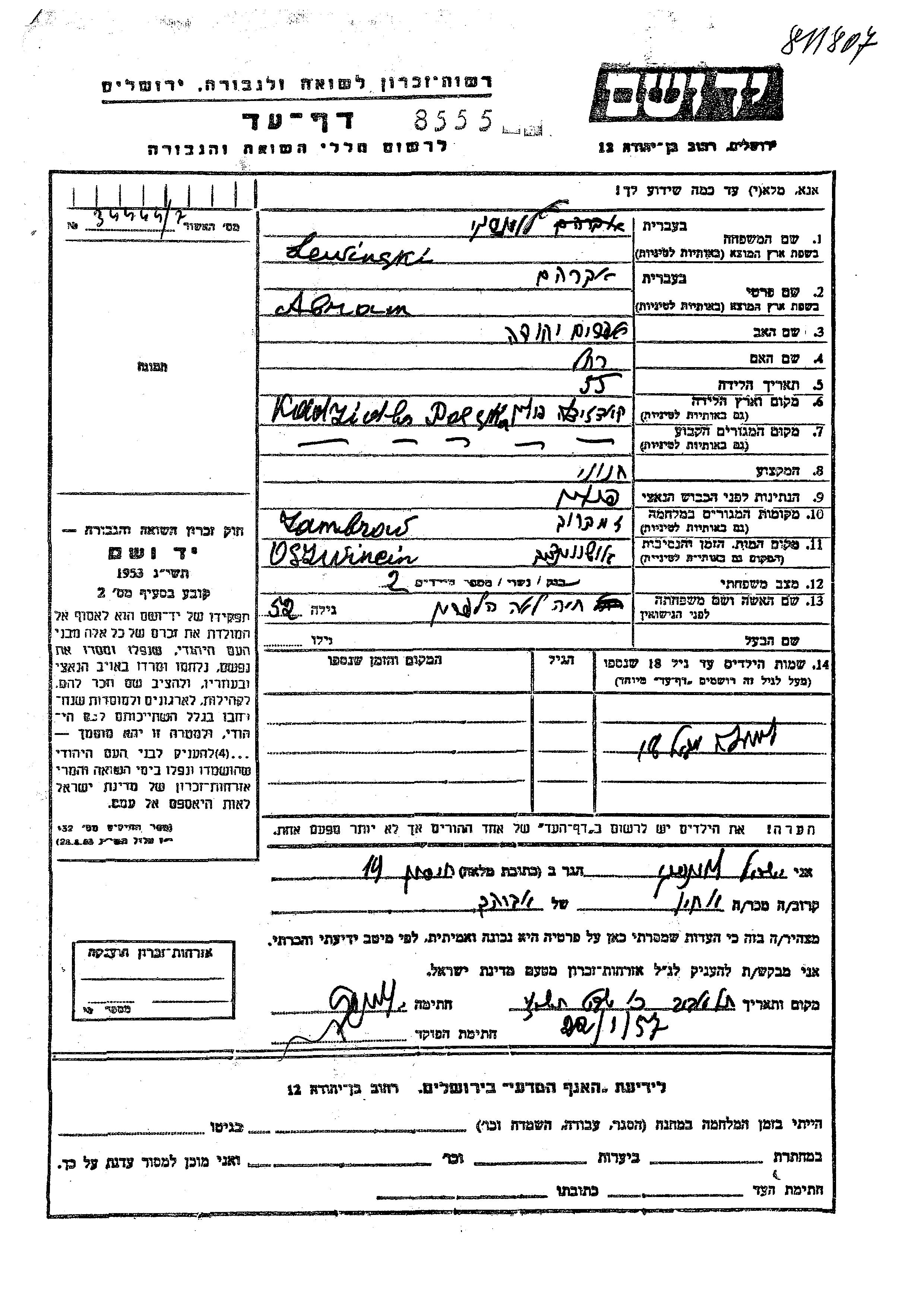 Abram Lewinski was born in Kadzidlo, Poland to Efraim Yehuda and Rakhel. He was a grocer and married to Khaia nee Halperin. Prior to WWII he lived in Kadzidlo, Poland. During the war he was in Zambrow, Poland. Abram was murdered in the Shoah. Place of death: Auschwitz, Poland.