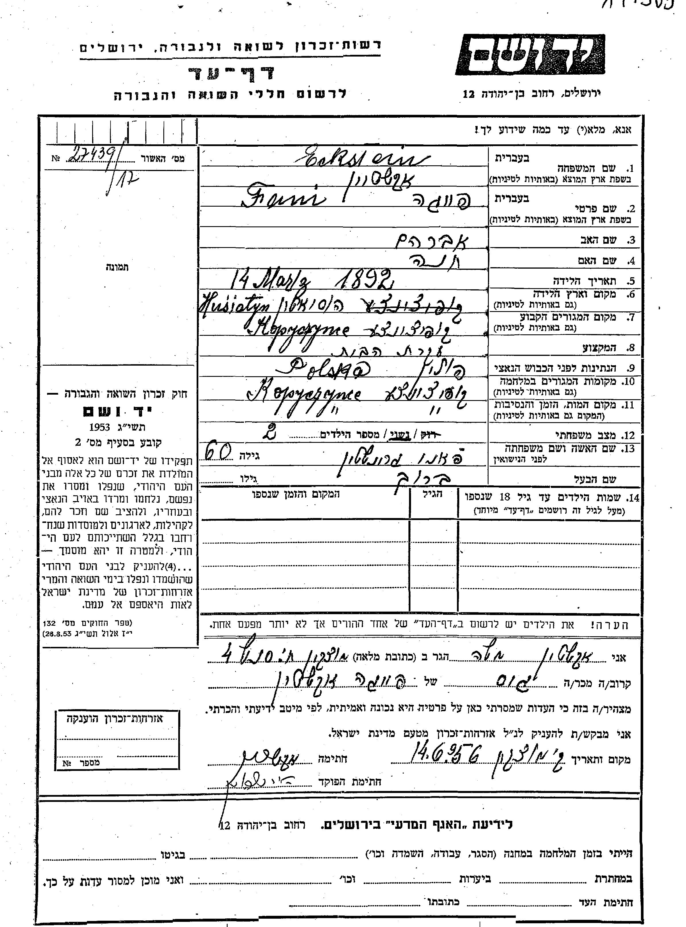 Yad Vashem - Pages of Testimony Names Memorial Collection
