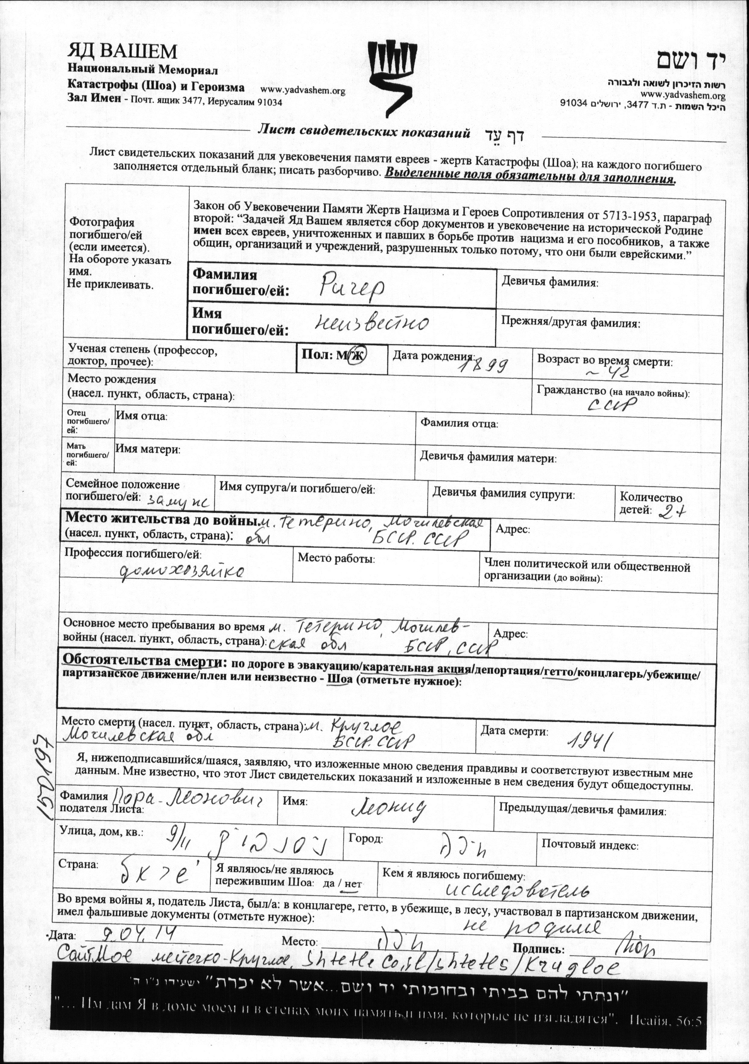 Search by last name of the submitter of the Page of Testimony, including diminutives or nicknames
