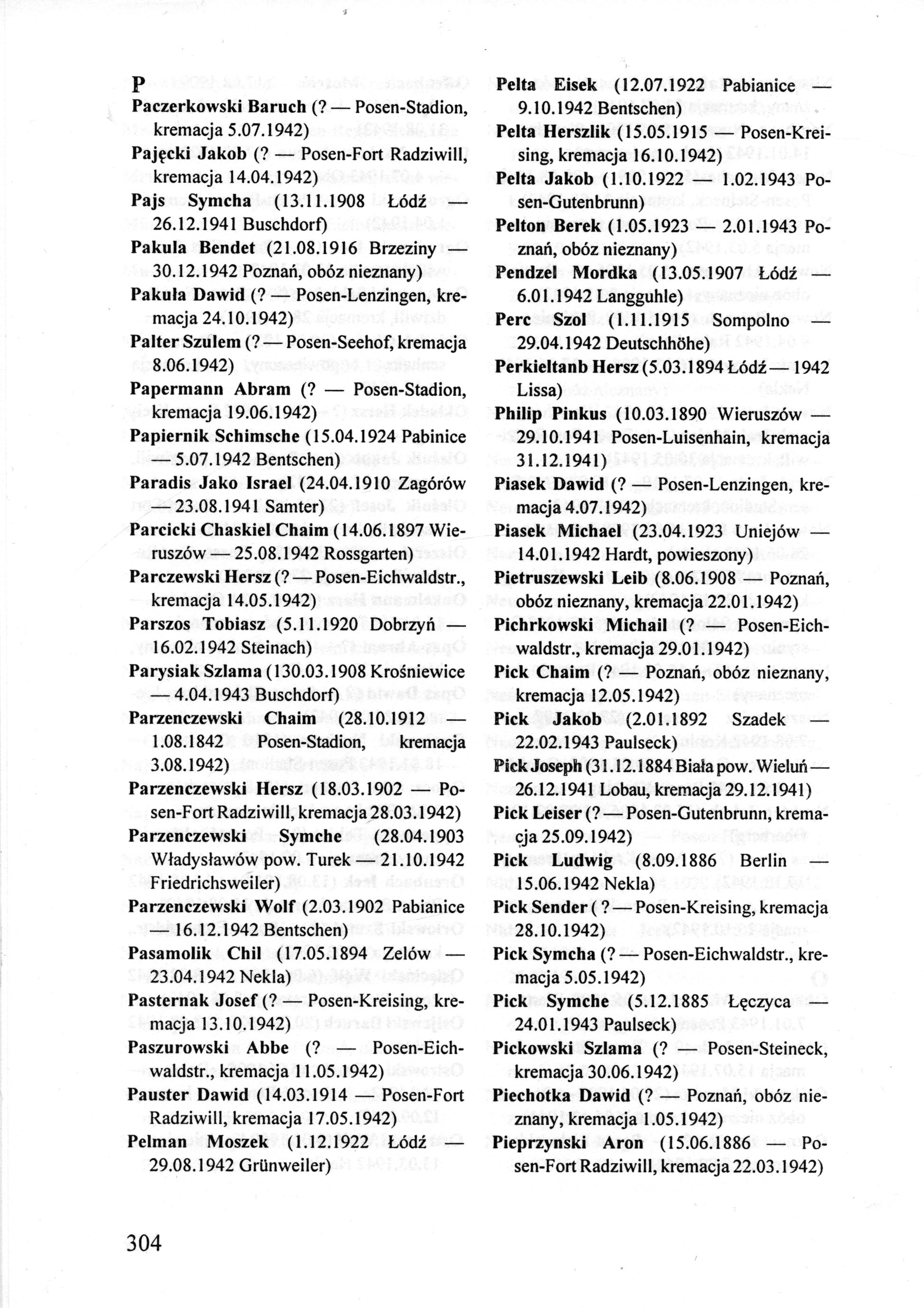 Parzenczewski Symche 1903 Wladyslawow, Poland List of persecuted persons
