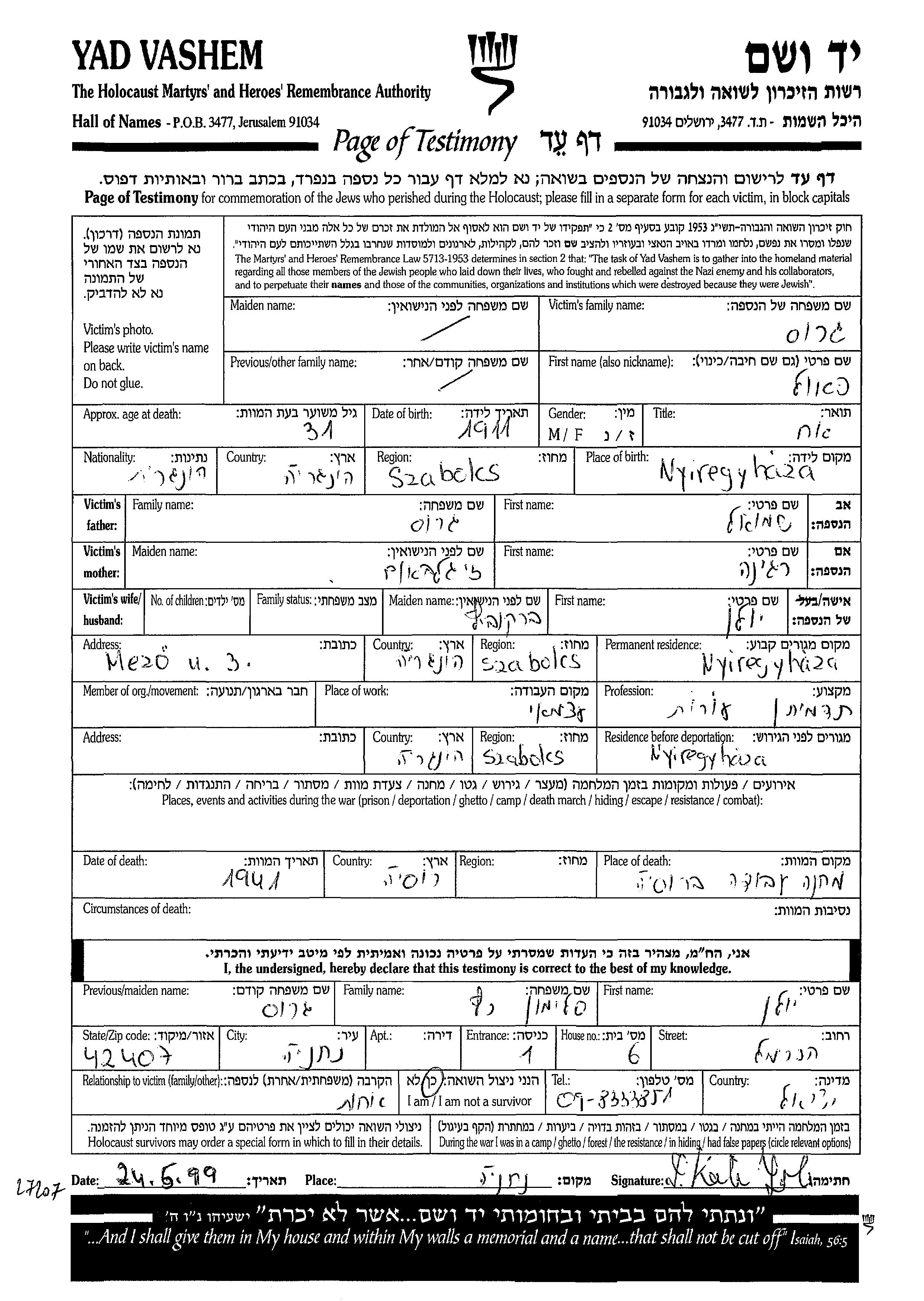 Yad Vashem - Pages of Testimony Names Memorial Collection