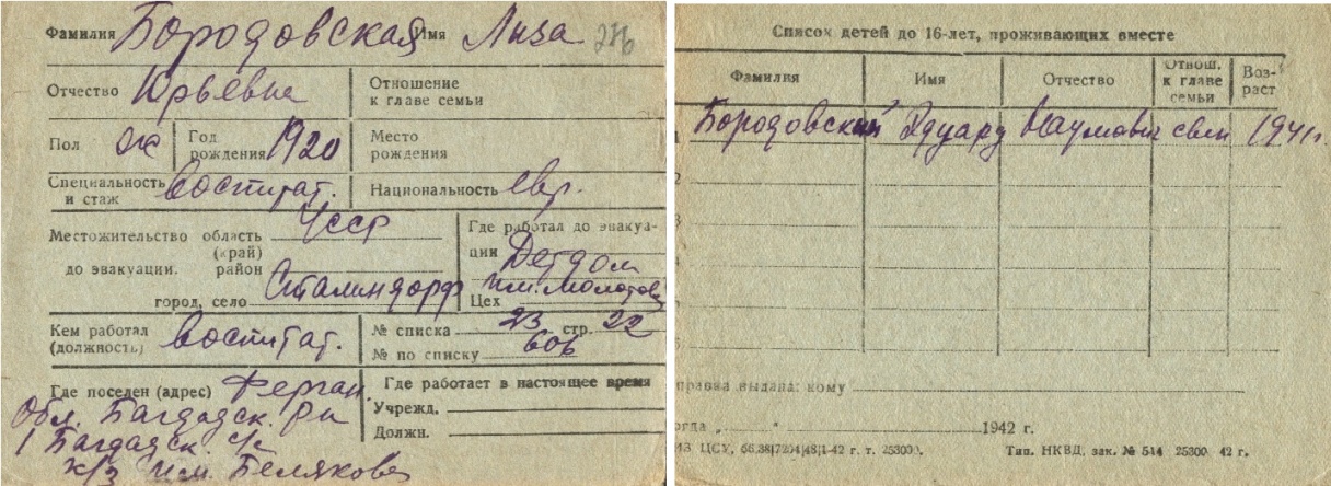 Following the Nazi onslaught on 22 June 1941, about one and a half million Jewish residents of the Soviet Union were evacuated or fled to the interior of the country. They had to leave everything behind and find refuge in difficult conditions of food scarcity, harsh weather and disease.
