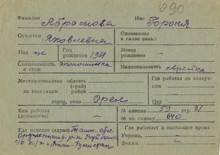 Abramova Bronya 1911 Orel, Russia (USSR) List of evacuated persons