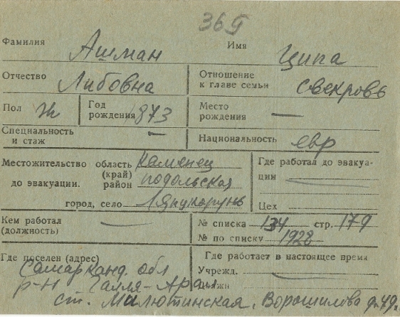 Ashman Tzipa 1873 Lyantskorun, Ukraine (USSR) List of evacuated persons