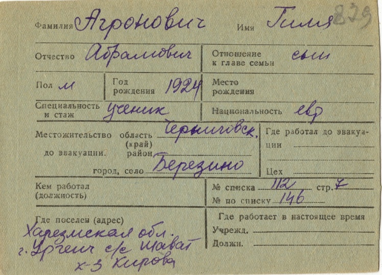 Following the Nazi onslaught on 22 June 1941, about one and a half million Jewish residents of the Soviet Union were evacuated or fled to the interior of the country. They had to leave everything behind and find refuge in difficult conditions of food scarcity, harsh weather and disease.