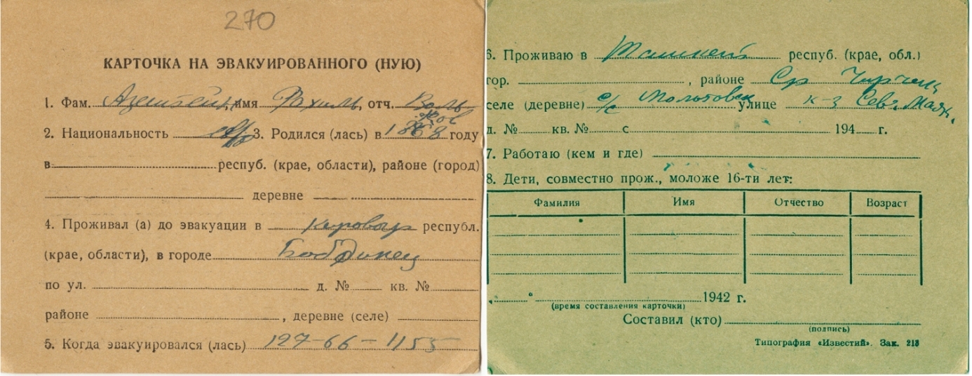 Was Registered Following the Evacuation/ in the Interior of the Soviet Union