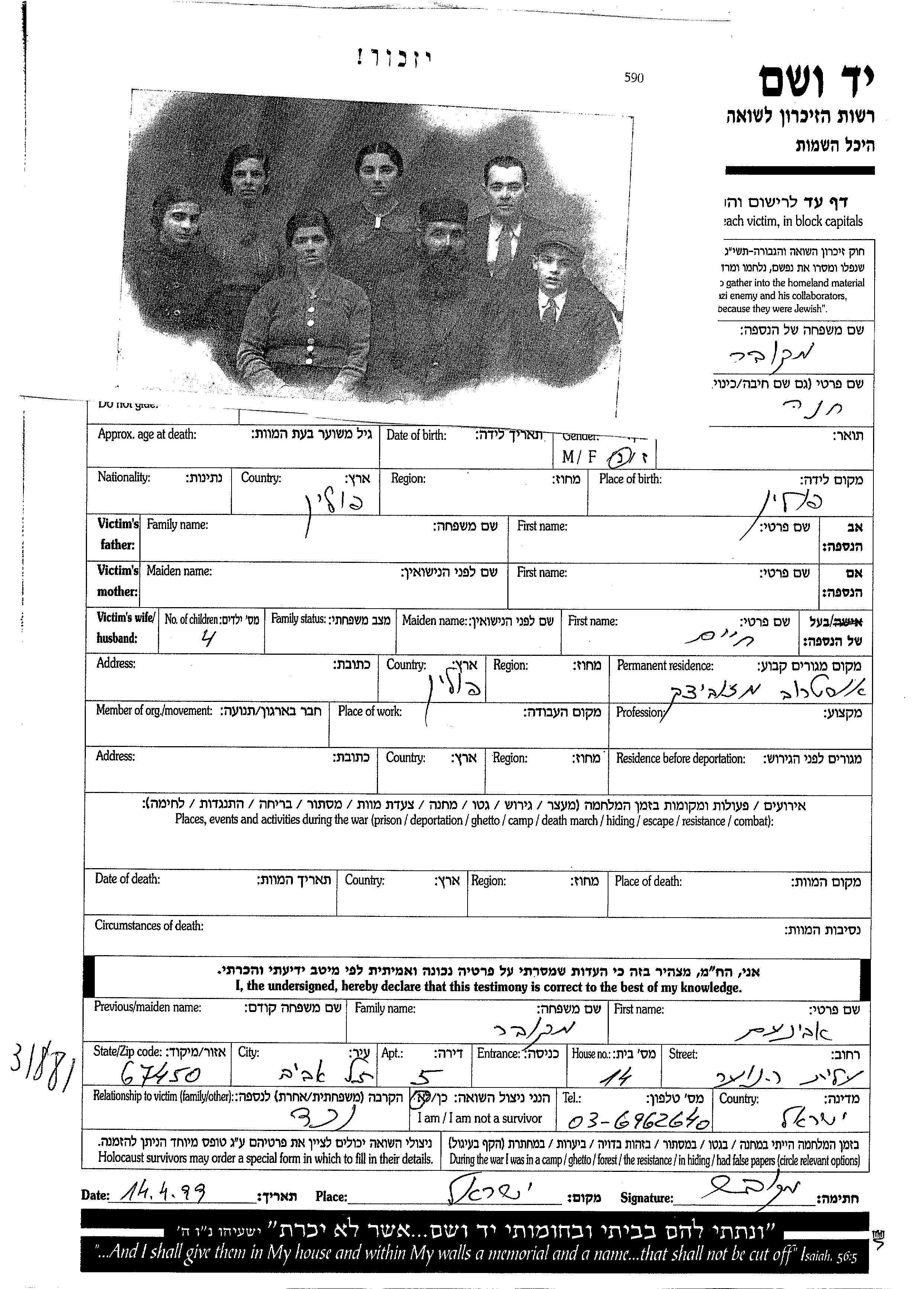 Yad Vashem - Pages of Testimony Names Memorial Collection