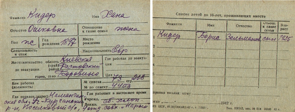 Kider Khana 1897 Borovaya, Ukraine (USSR) List of evacuated persons