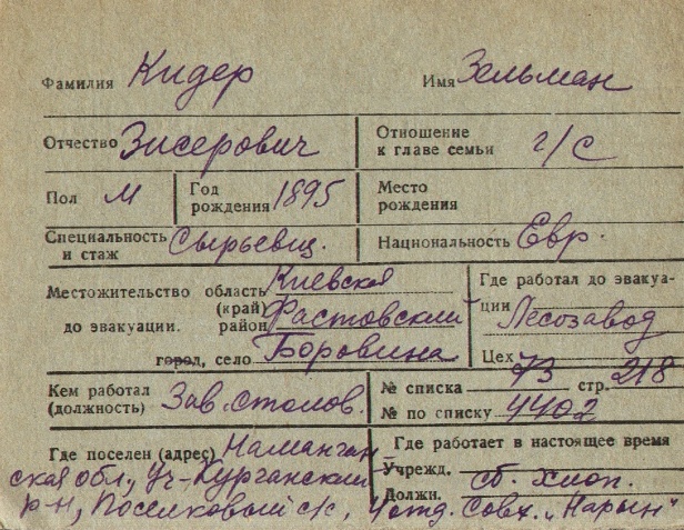 Kider Zelman 1895 Borova, Ukraine (USSR) List of evacuated persons