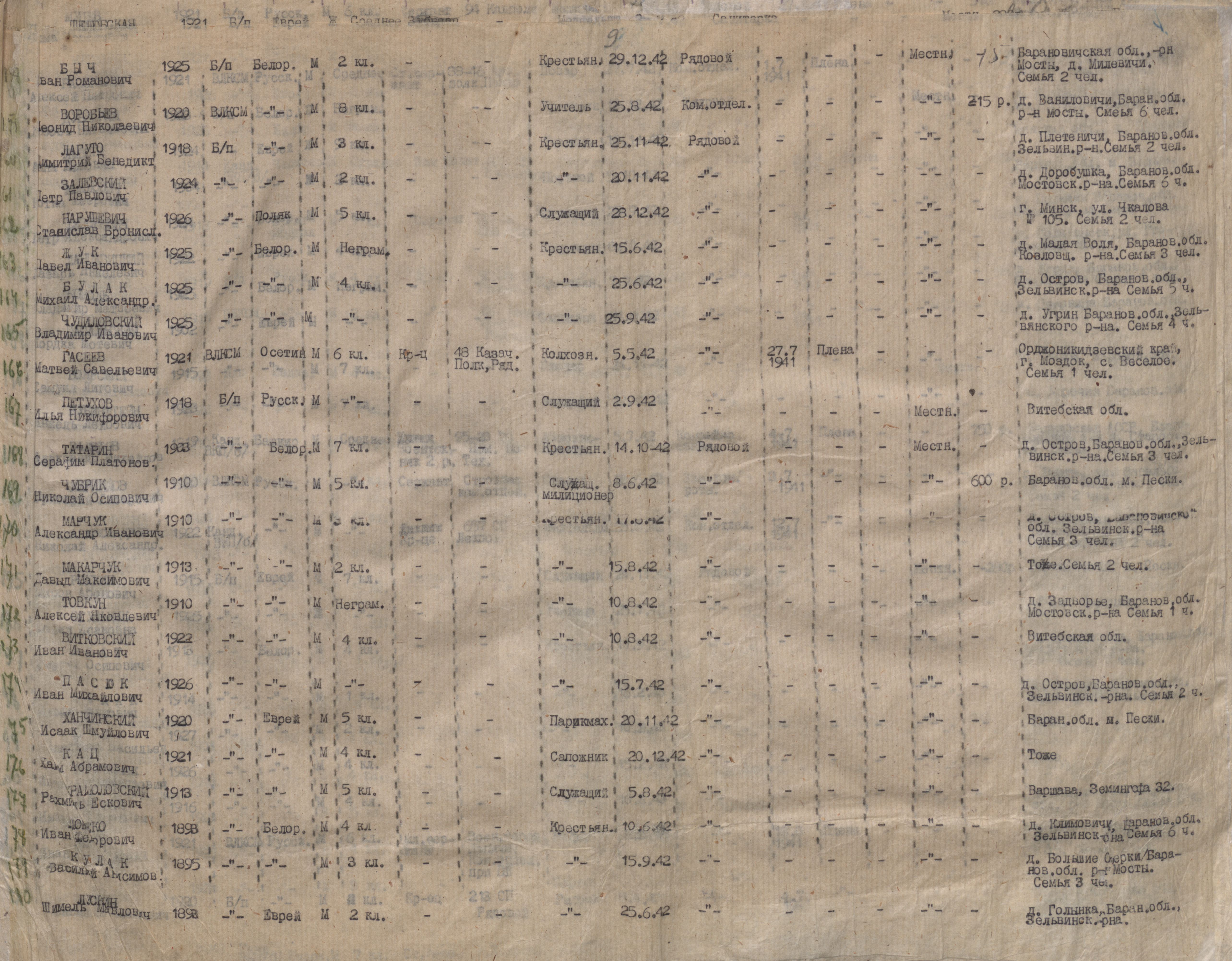 Last Name First Name Year of Birth Place of Residence Source