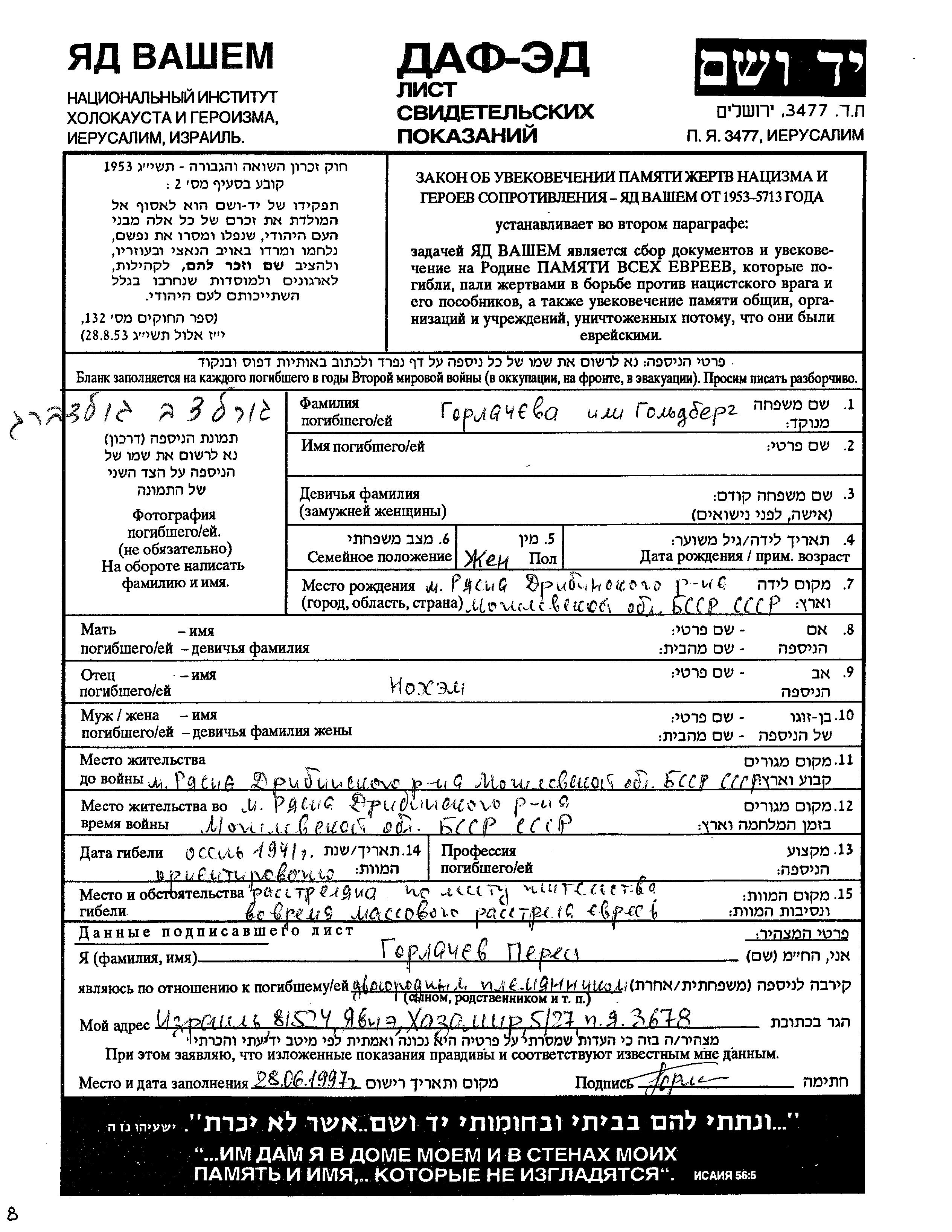 Yad Vashem - Pages of Testimony Names Memorial Collection