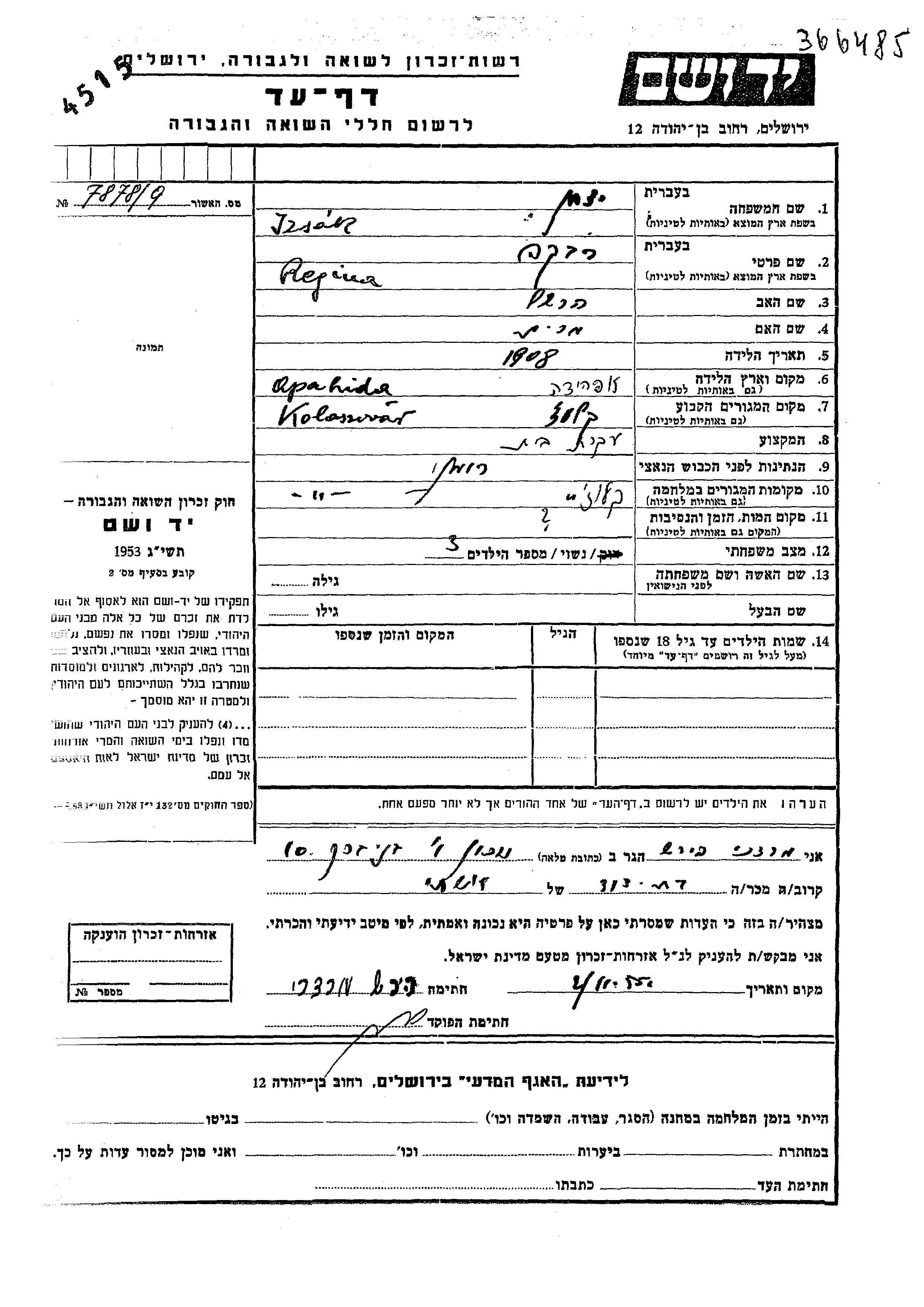 Izsak Itzkhak Regina Rivka 1908 Cluj, Romania Page of Testimony