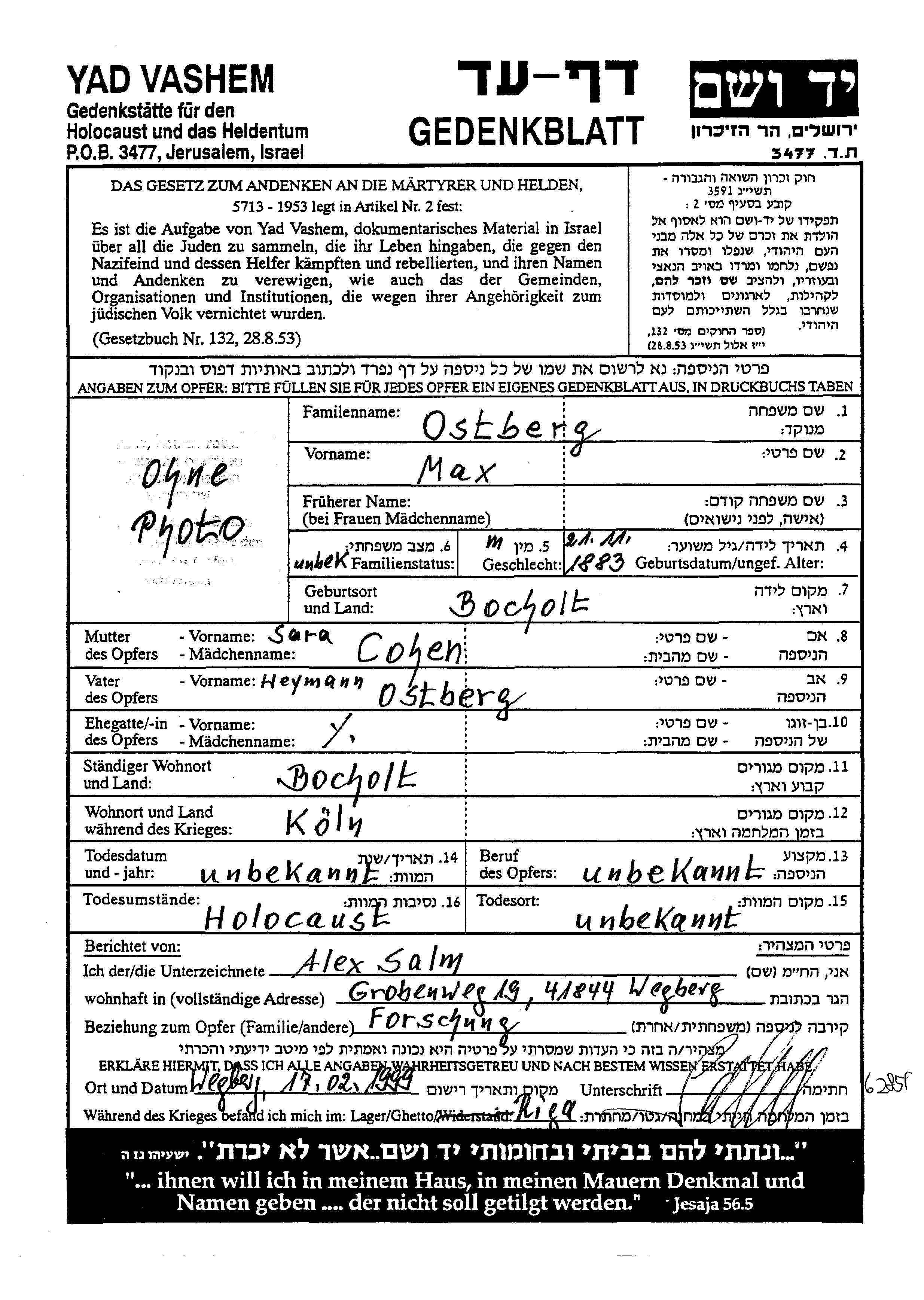 Ostberg Max 1883 Bocholt, Germany Page of Testimony