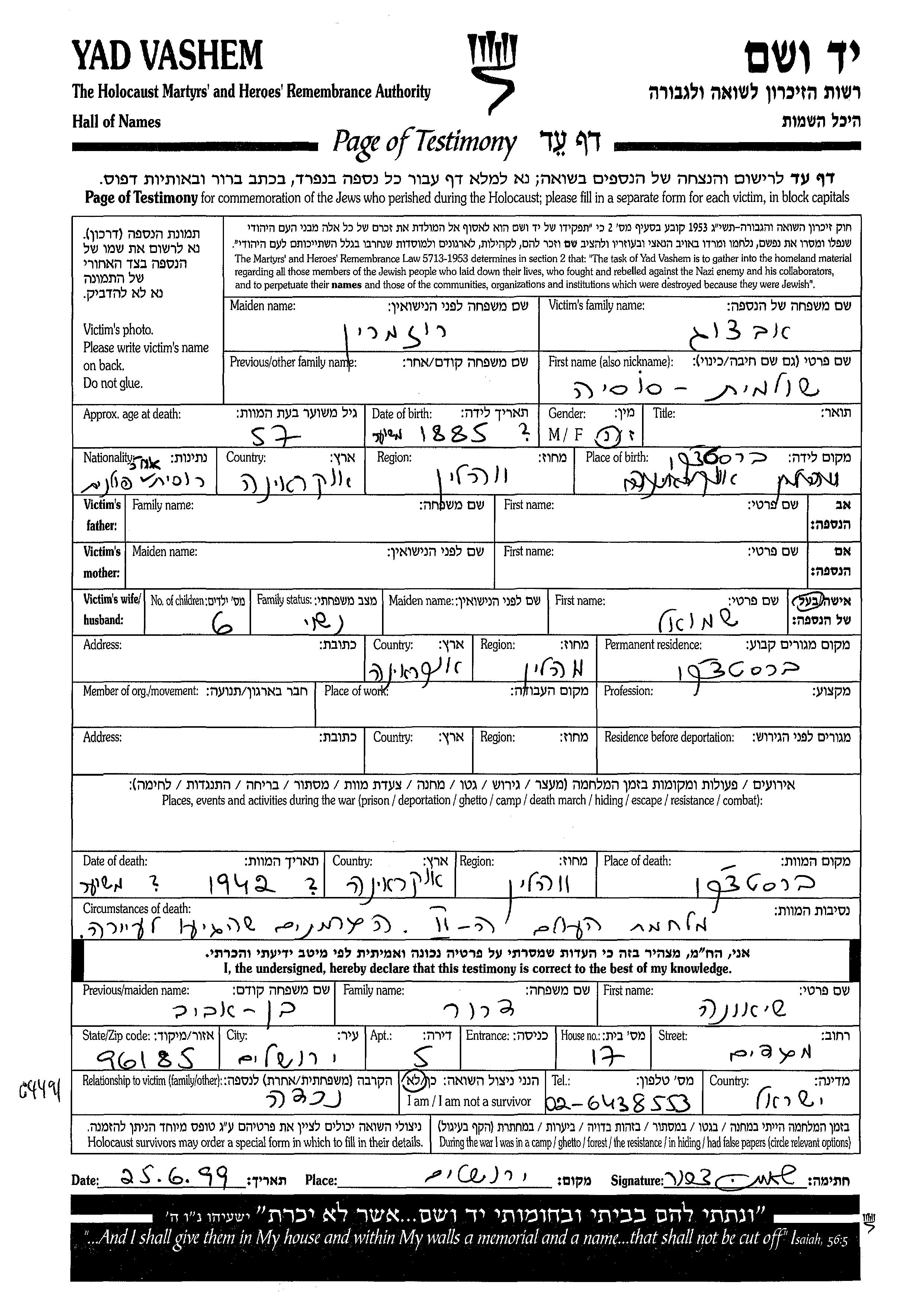 Yad Vashem - Pages of Testimony Names Memorial Collection