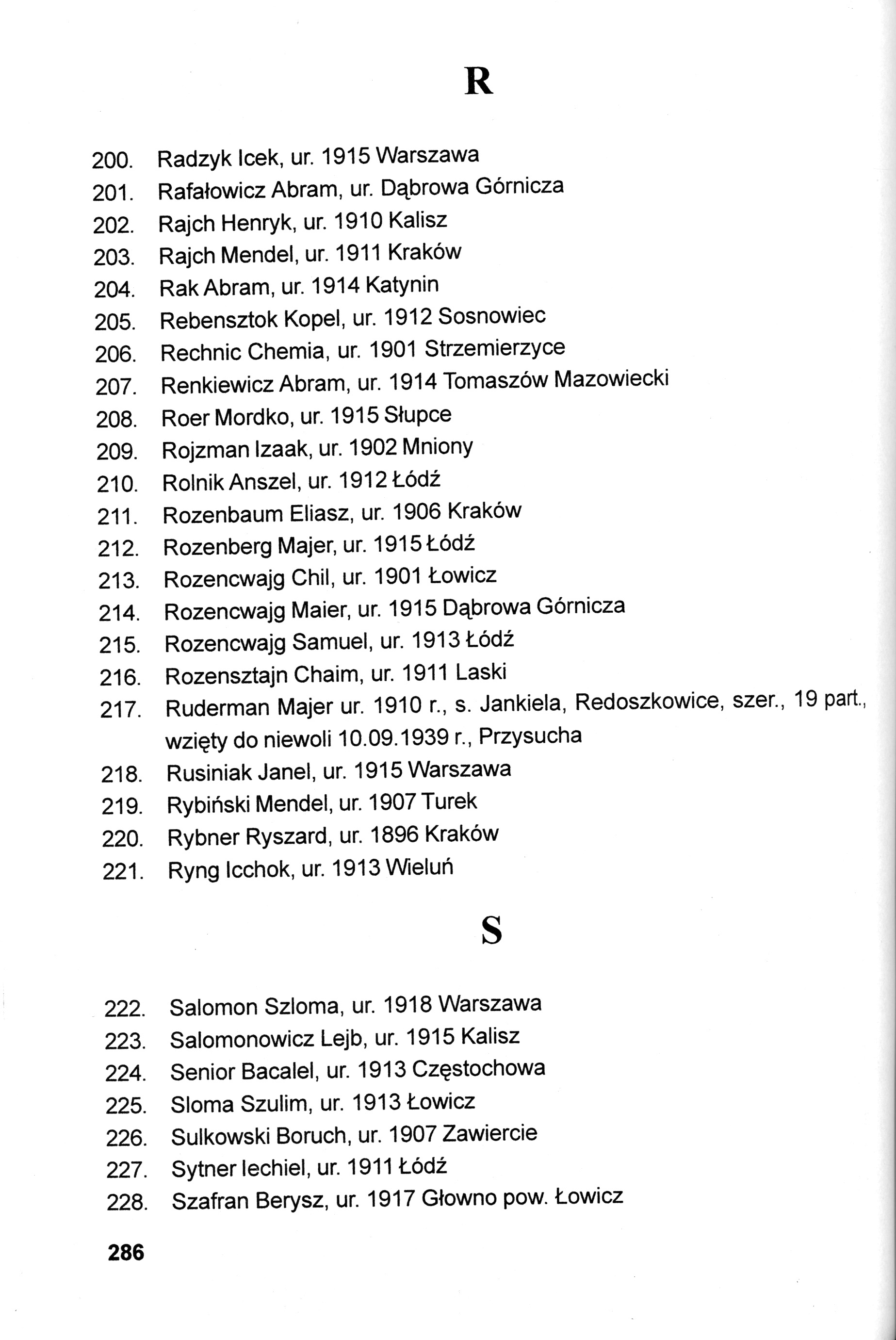 Szafran Berysz 1917 Glowno, Poland List of persecuted persons