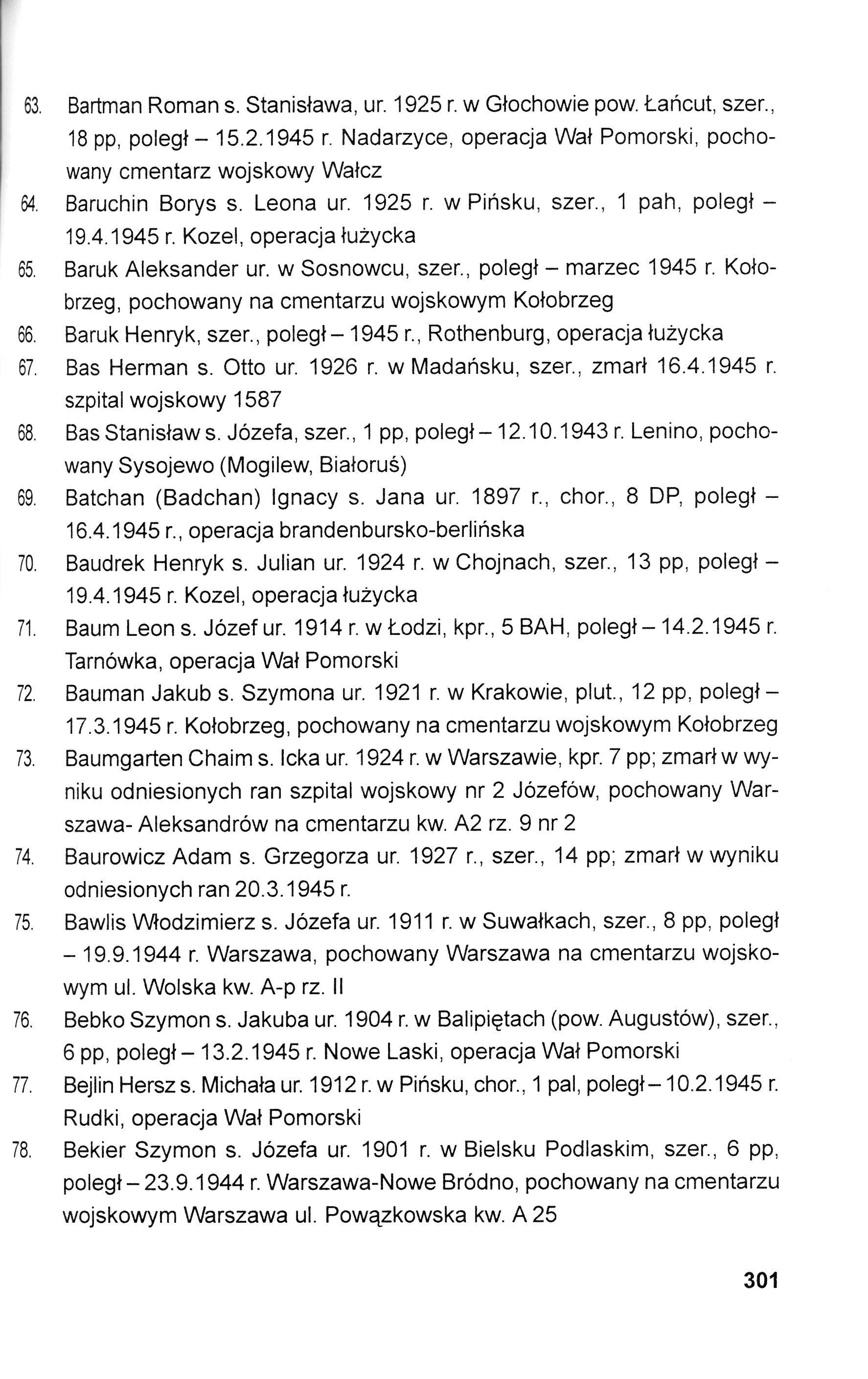 Sergeant Szymon Bebko was born in Augustow, Poland, 1904 to Jakub. During the war he was in the Polish armed forces. Sergeant Bebko was killed in military service in WWII. Place of death: Wierzchowo, Germany, 13/02/1945.