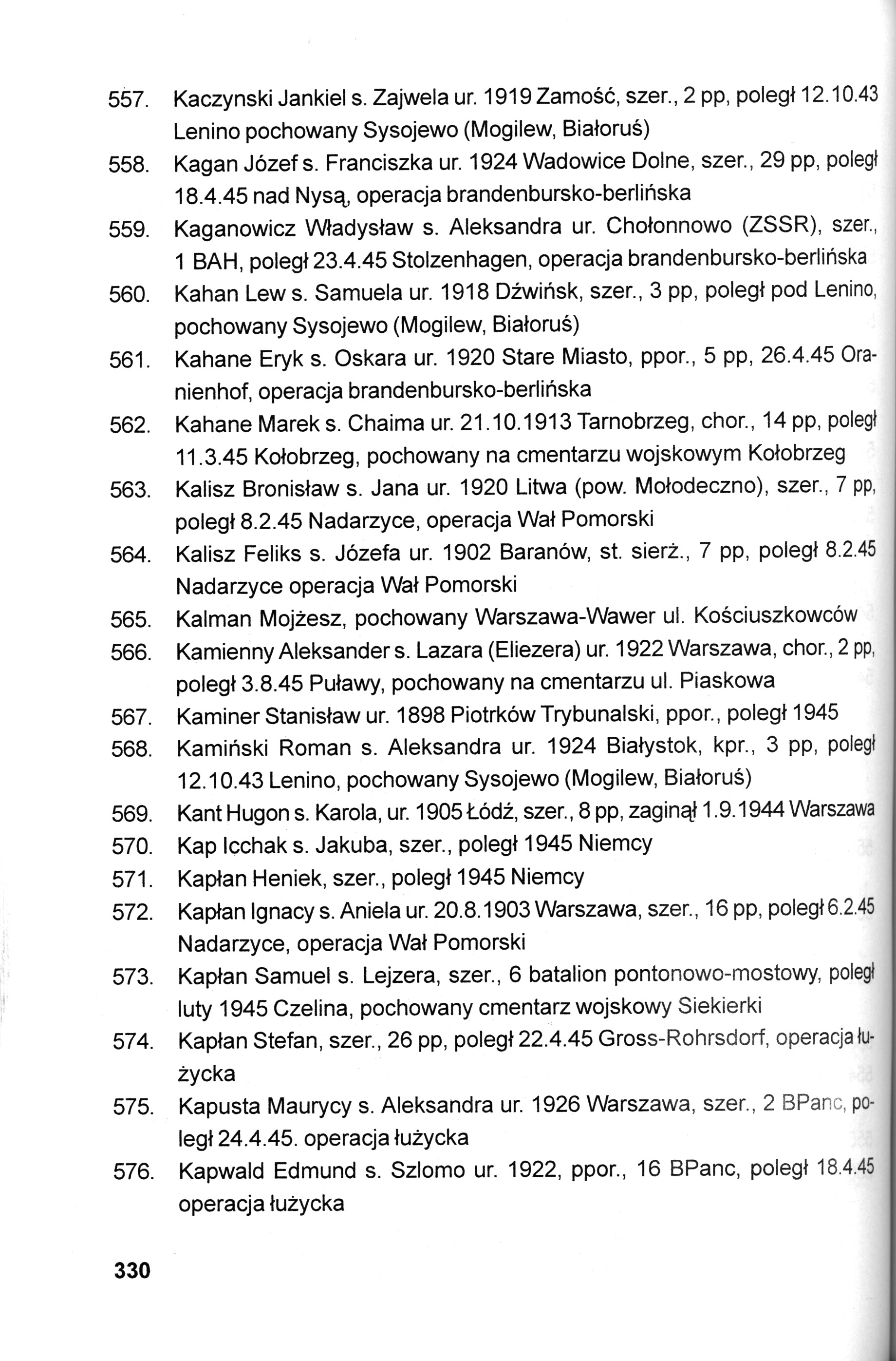 Sergeant Józef Kagan was born in Wadowice, Poland, 1924 to Franciszek. During the war he was in the Polish armed forces. Sergeant Kagan was killed in military service in WWII. Place of death: Nysa, Germany, 18/04/1945.
