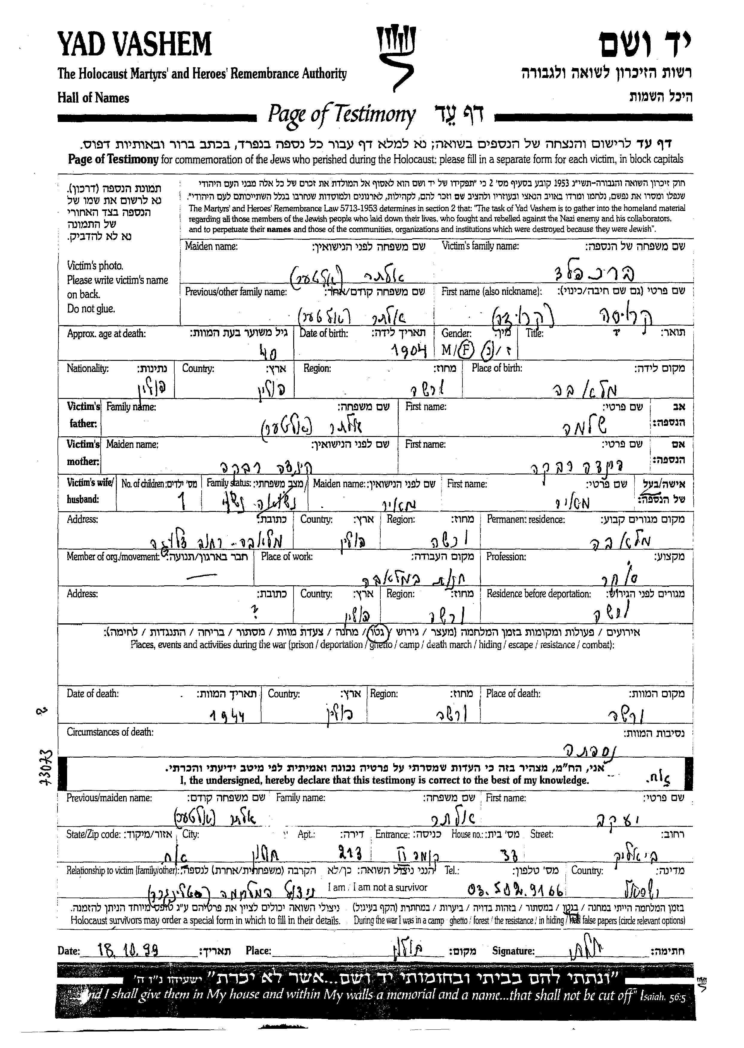 Yad Vashem - Pages of Testimony Names Memorial Collection