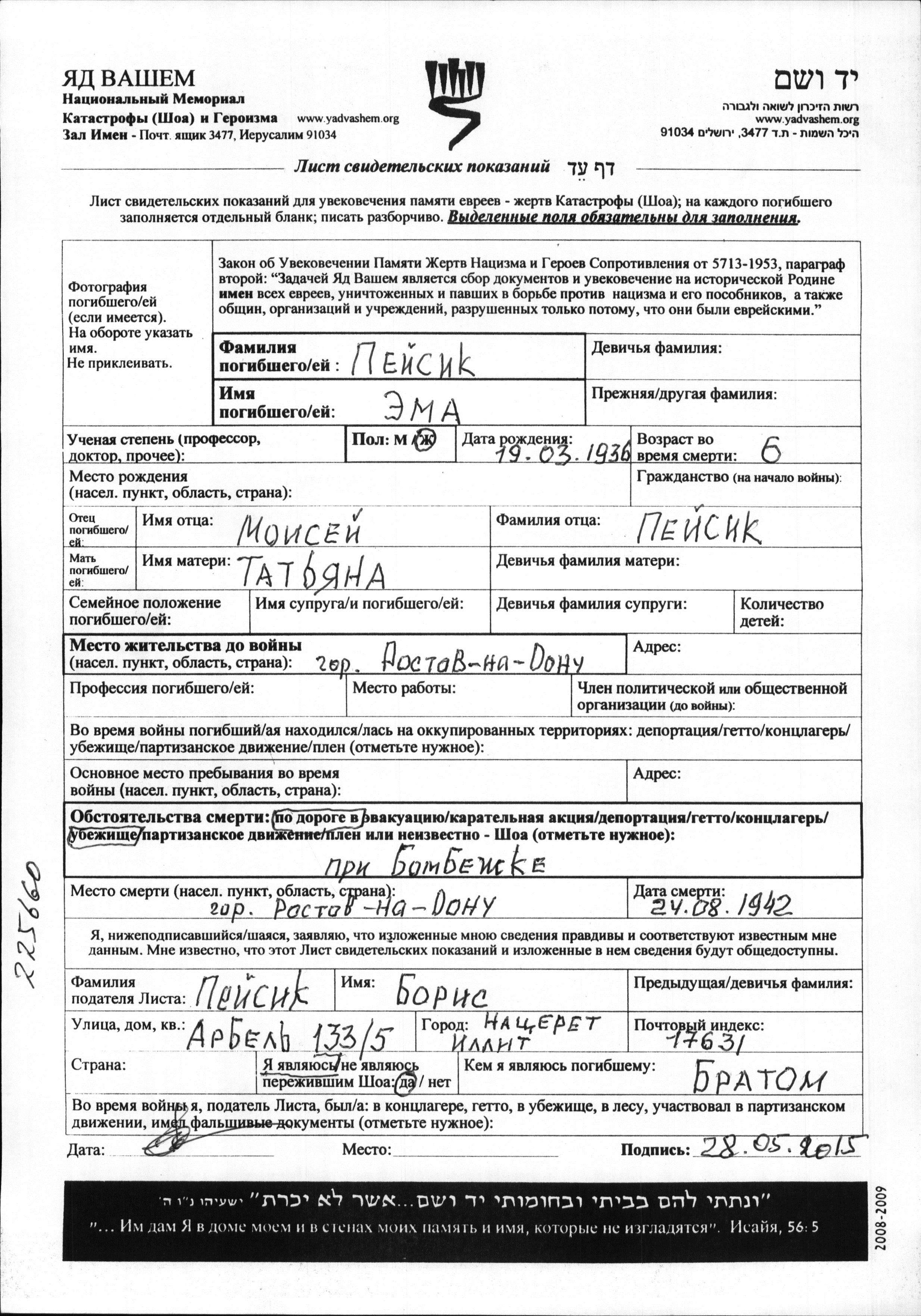 During the Shoah, Jews were murdered in a variety of ways, among them gassing, shooting, burning, drowning or burial alive, exhaustion through forced labor, starvation, epidemic diseases, deprivation of medical care and minimal hygienic conditions, and more. Some Jews took their own lives in order to escape arrest and further persecution, or to end their hopeless, relentless suffering.