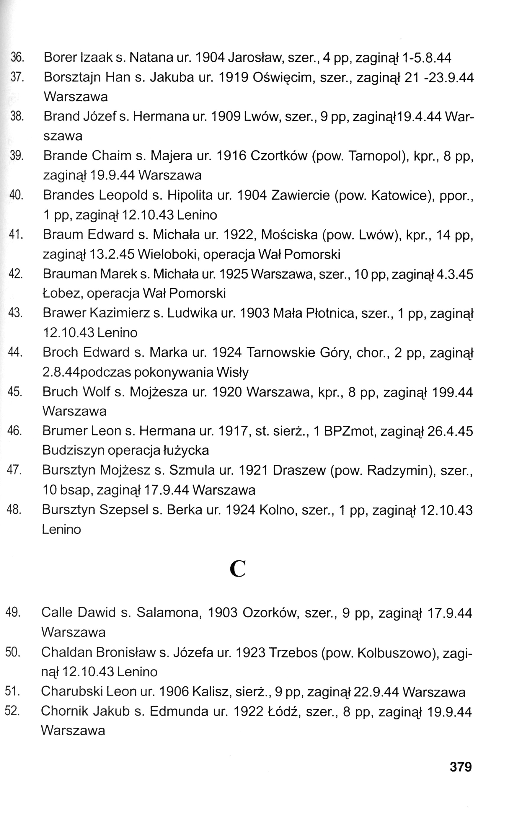 Sergeant Mojżesz Bursztyn was born in Radzymin, Poland, 1921 to Szmul. During the war he was in the Polish armed forces. Sergeant Bursztyn was murdered in the Shoah. Place of death: Warszawa, Poland, 17/09/1944.