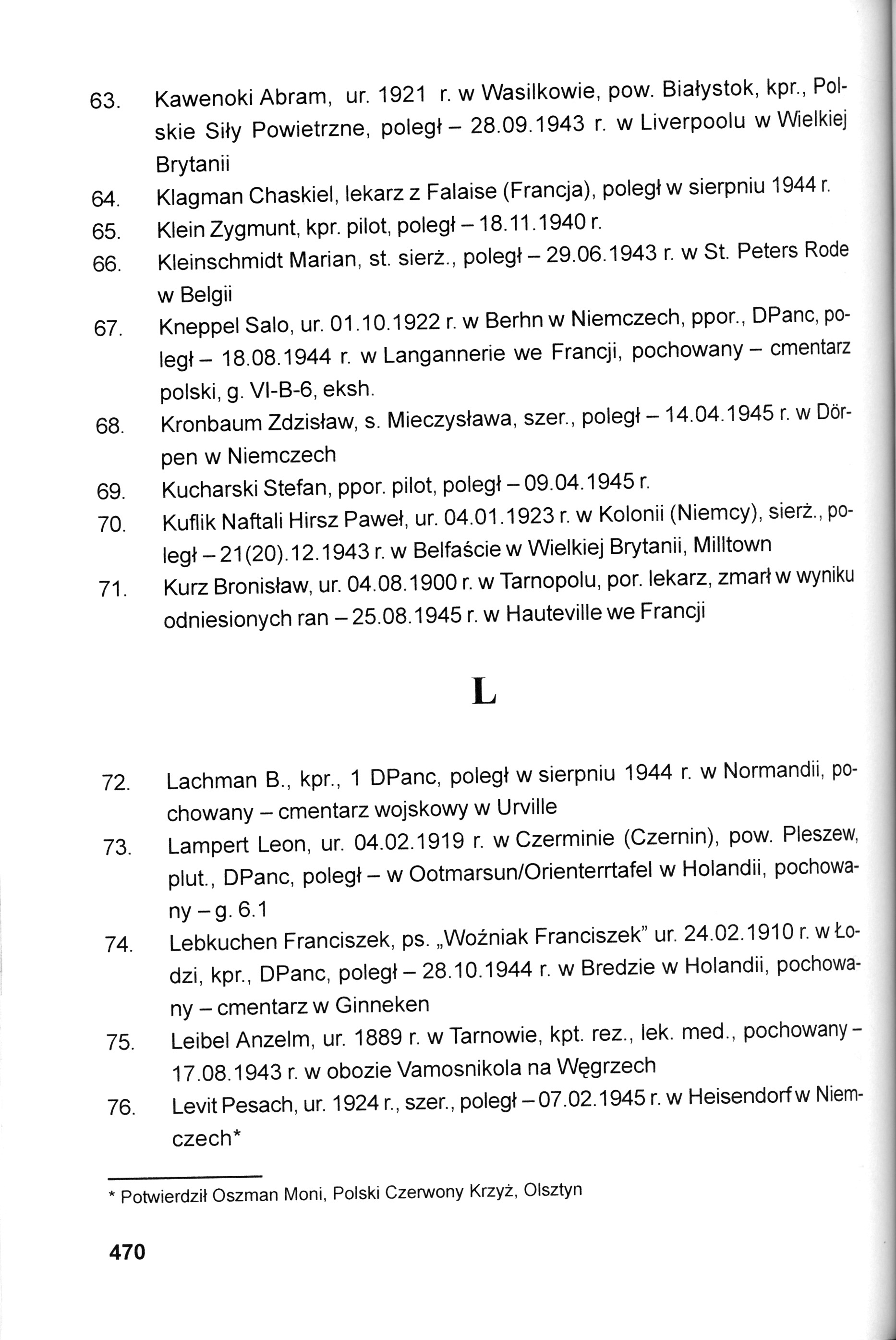Corporal Leon Lampert was born in Pleszew, Poland, 1919. During the war he was in the Polish armed forces. Corporal Lampert was killed in military service in WWII. Place of death: Overijssel, The Netherlands.