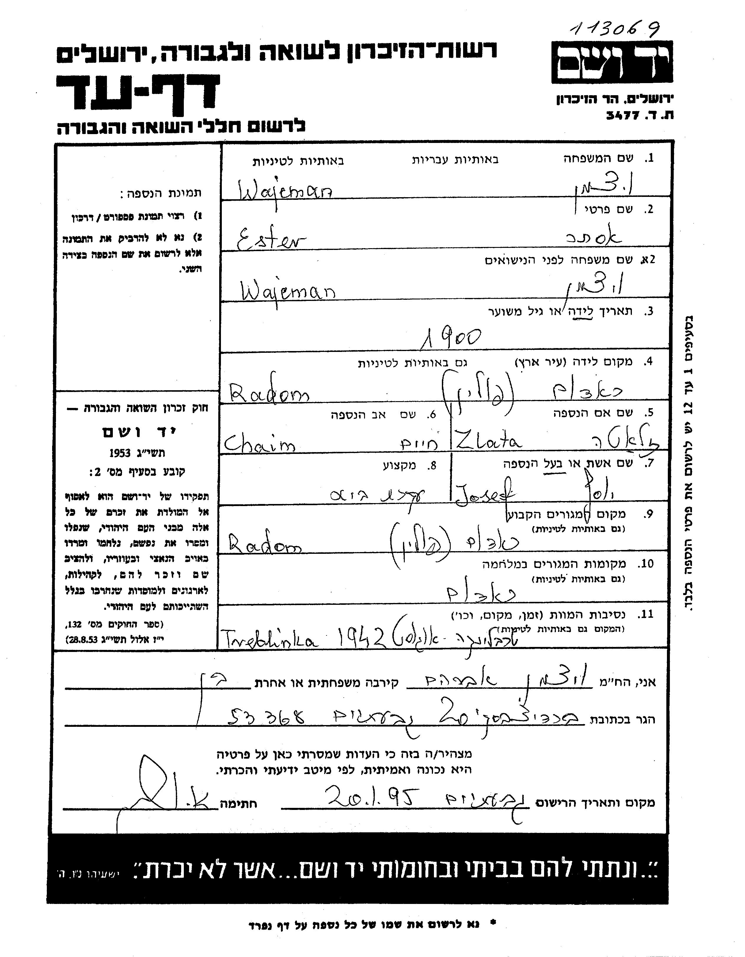 Wajcman Ester 1900 Radom, Poland Page of Testimony