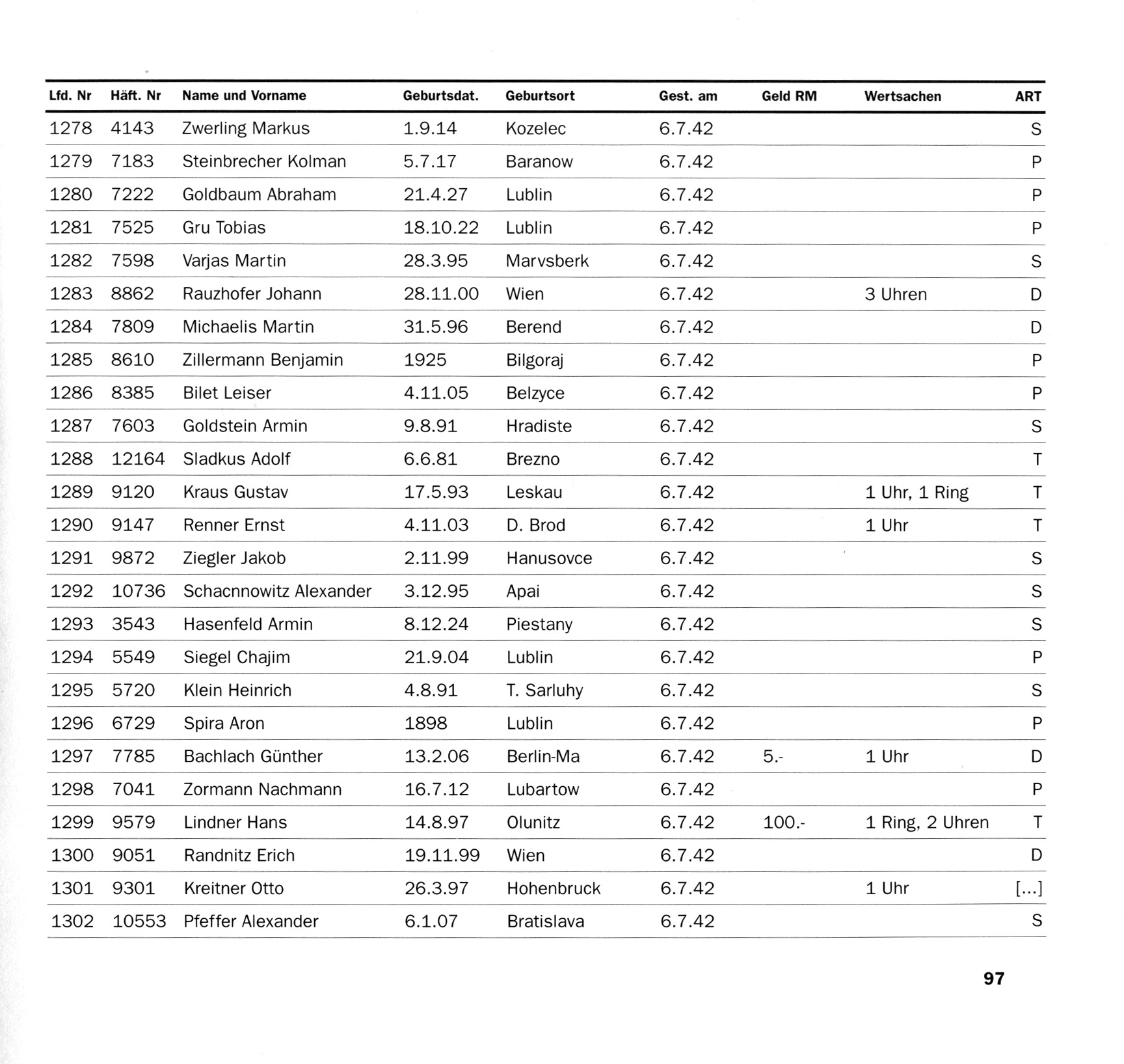 Steinbrecher Kolman 1917 Baranowo, Poland List of persecuted persons